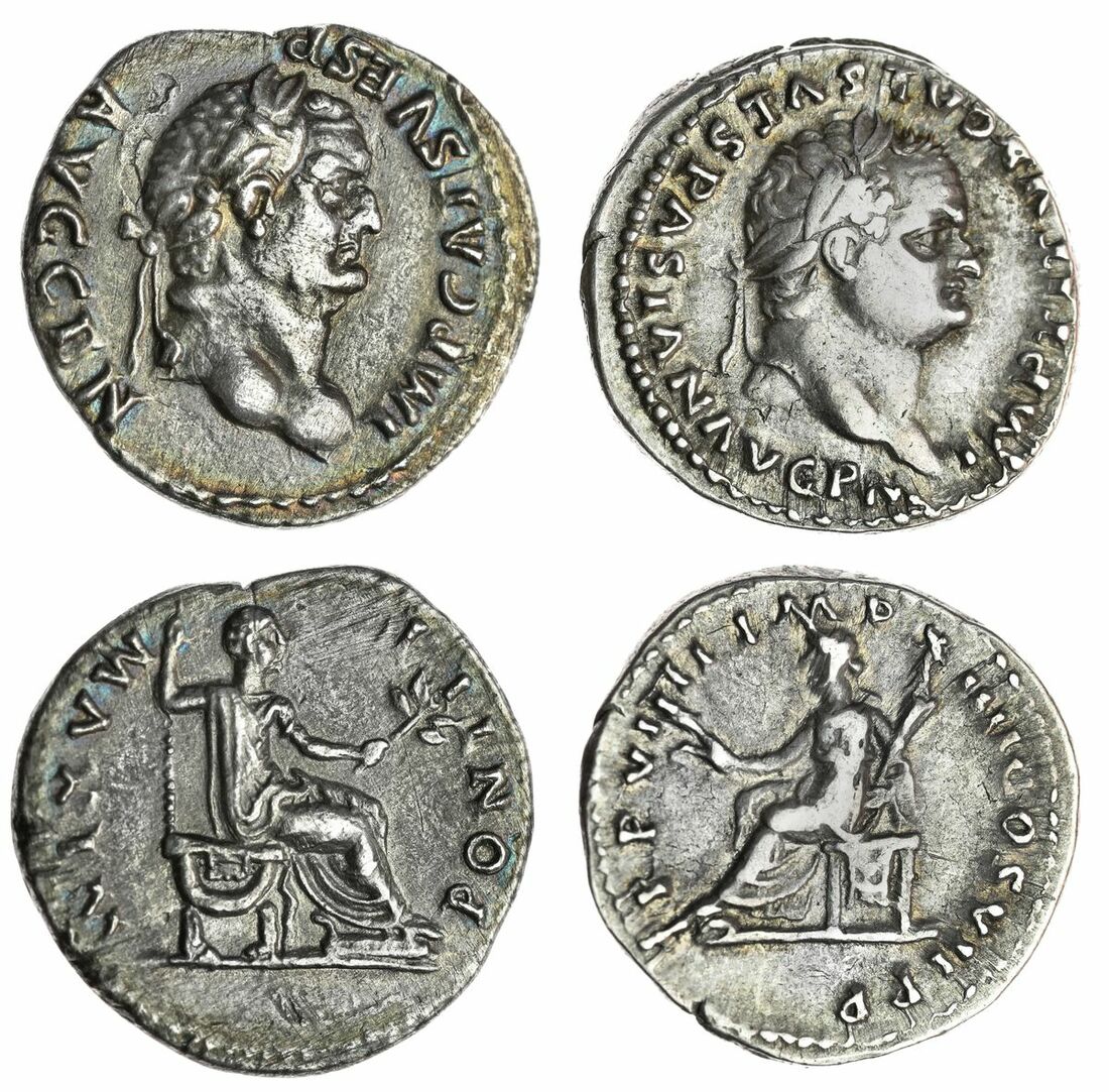 Roman Empire, a Pair of Flavian Denarii (2): Vespasian (AD 69-79),