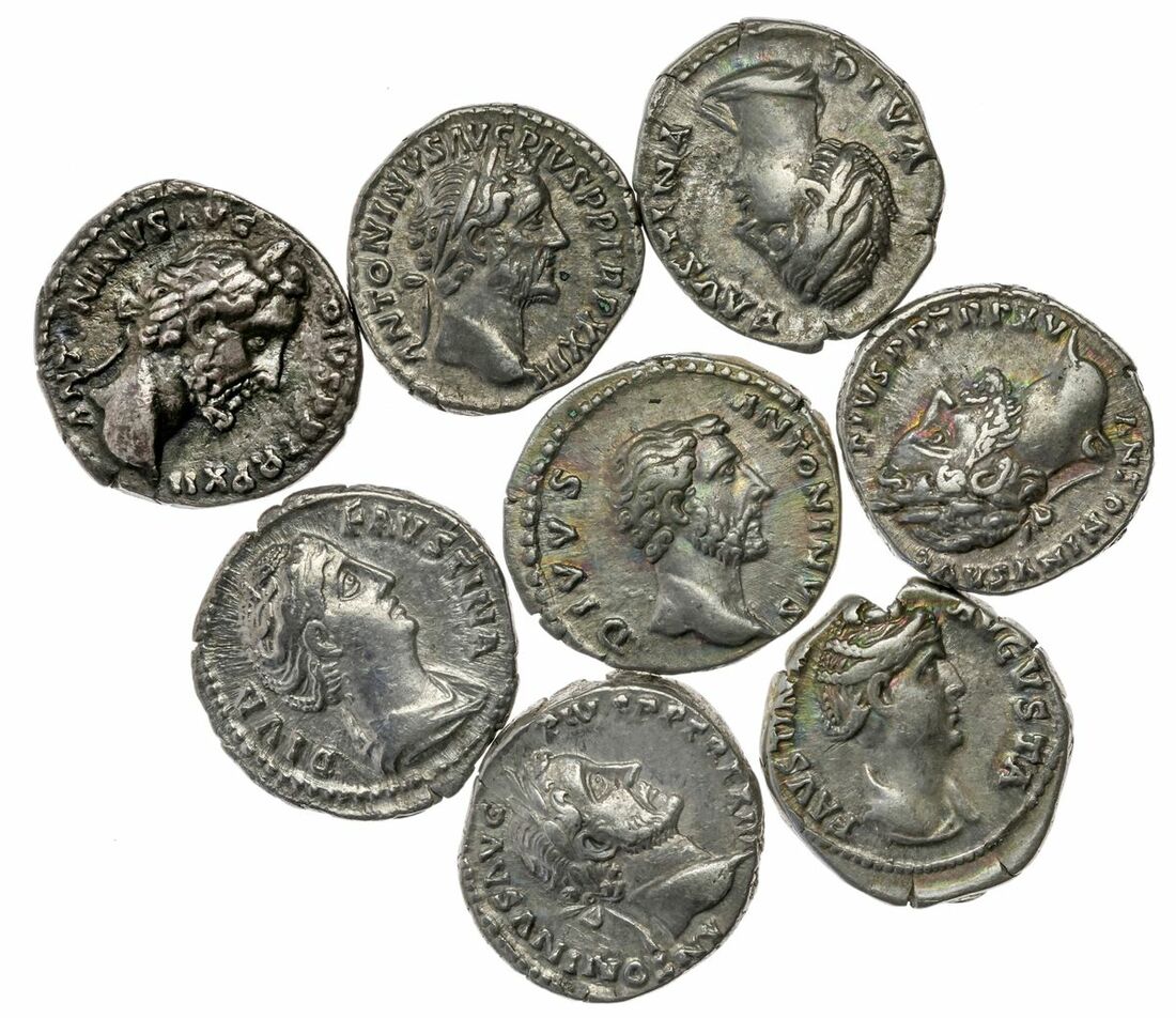Roman Empire, Antoninus Pius and Faustina Senior, (8) AR Denarii: Antoninus Pius (5), all with laureate head right on obverse, with