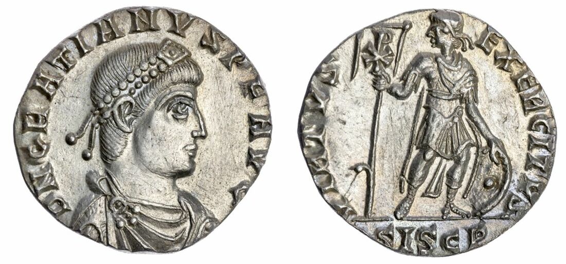 (x) The 'White Rose' Collection | Roman Empire, Gratian (367-383), AR Miliarense, AD 367-375, Siscia, pearl-diademed, draped and cuirassed bust right,