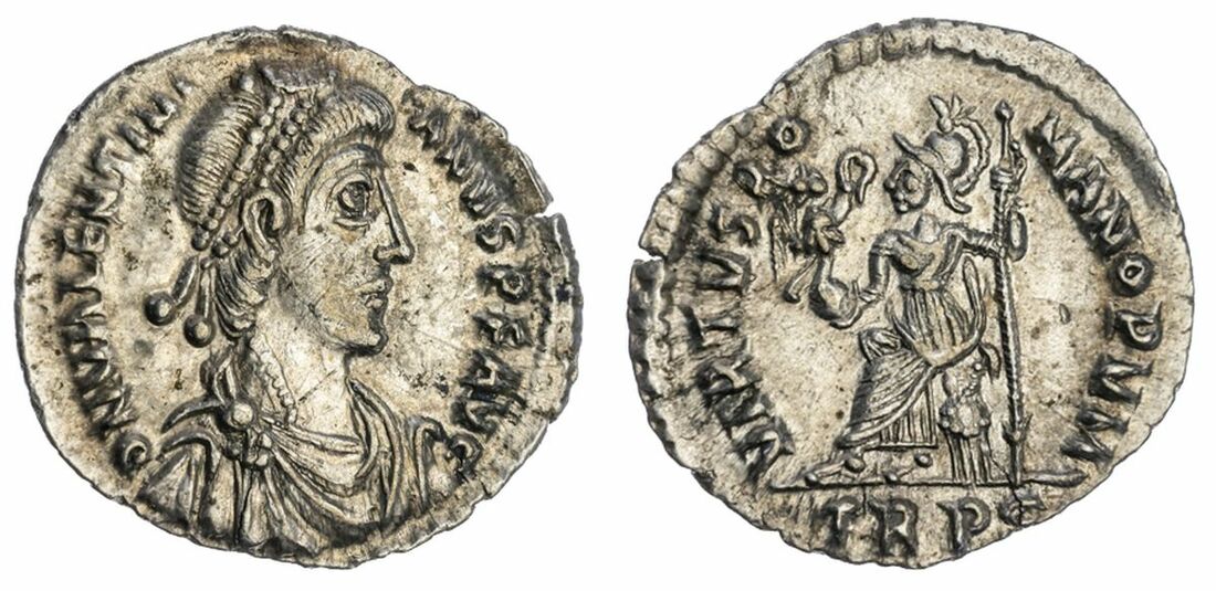 (x) The 'White Rose' Collection | Roman Empire, Valentinian II (375-392), AR Siliqua, Trier, pearl-diademed, draped and cuirassed bust right,