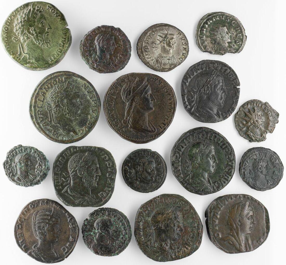 Roman Empire, Selection of Third-Century Roman Bronze (16): Including Sabina Augusta; Commodus, (RIC 440); Caracalla; Otacilia Severus (2); Philip I, 'The Arab, (2); Philip II; Tetricus; Gordian (?); Probus (3);Aurelian Vabalathus (2); Gallienus;  Valerian; Ranging from good to very fine, with collector's tickets, (16). Sold as described, no returns.