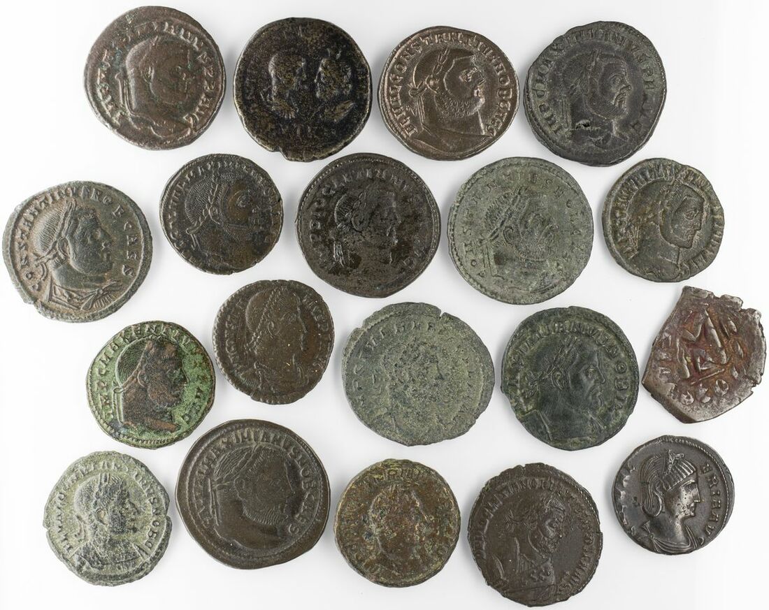 Roman Empire, Selection of Bronze (19): Gordian III AE 26; Valerian AE As; Diocletian, (2); Maximian, (2); Constantius I (2); Galerius (4); Galeria; Maxentius; Constantine I, 'The Great (2); Severus II; Constantius II; Constans II, ranging from good to very fine. (19). Sold as described, no returns.