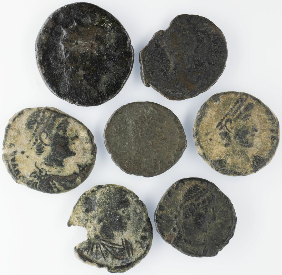 A Selection of Late-Roman Bronze (AD 380-400) (7): i) 1.47g; ii) 1.47g; iii) 2.55g; iv) 1.87g; v) 1.40g; vi) 2.55g; vii) 3.10g, ranging from good to good fine, (7) Sold as described, no returns. Viewing recommended
