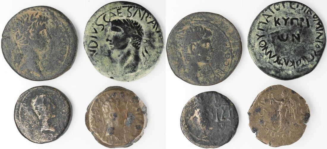 Roman Empire, Provincial Cypriot Bronze (4): Augustus (27BC-AD14) (2): i) AE 21mm, 26BC, bare head right, rev.