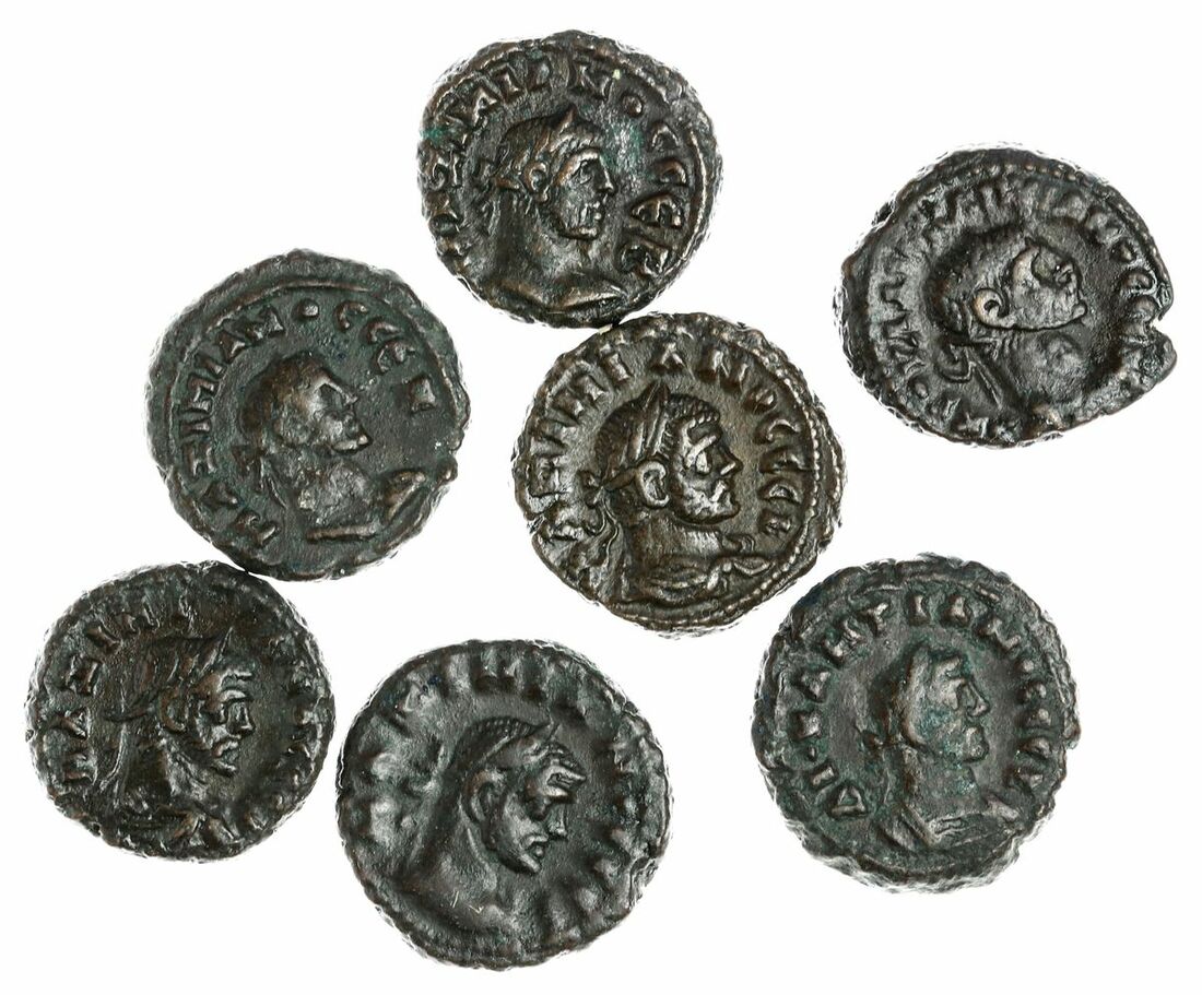 Roman Empire, a Selection of Provincial Billion, (7): Diocletian (AD284-305), BI Tetradrachm, lexandria, RY12 (2): i) 9.30g; ii) 7.34g both good fine; Maximian (AD286-305) BI Tetradrachm, (5): RY 10, 7.22g, about fine; RY 11 (4): i) 7.25g; ii) 7.04g; iii) 7.57g; iv) 7.13g, ranging from good fine to very fine, (7). Viewing recommended. Sold as described, no returns.