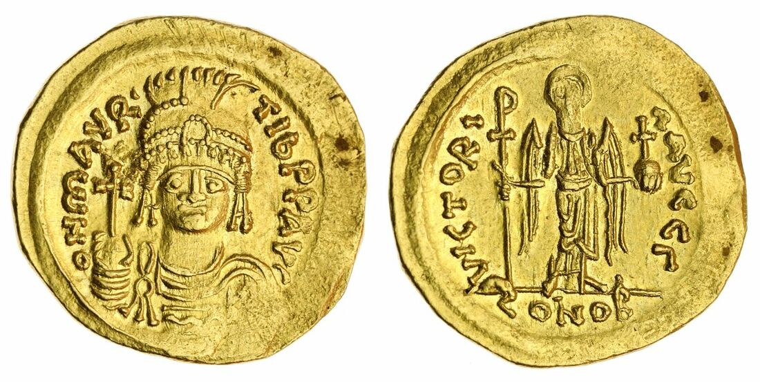 Byzantine Empire, Maurice Tiberius (582-602) AV Solidus, Constantinople, 3rd officina, (583/4-602)