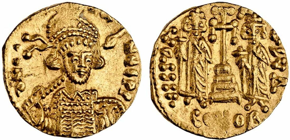 (x) The 'White Rose' Collection | Byzantine Empire, Constantine IV (668-685), AV Solidus, Constantinople, cuirassed facing bust, wearing plumed helmet and holding spear over shoulder and shield, rev.