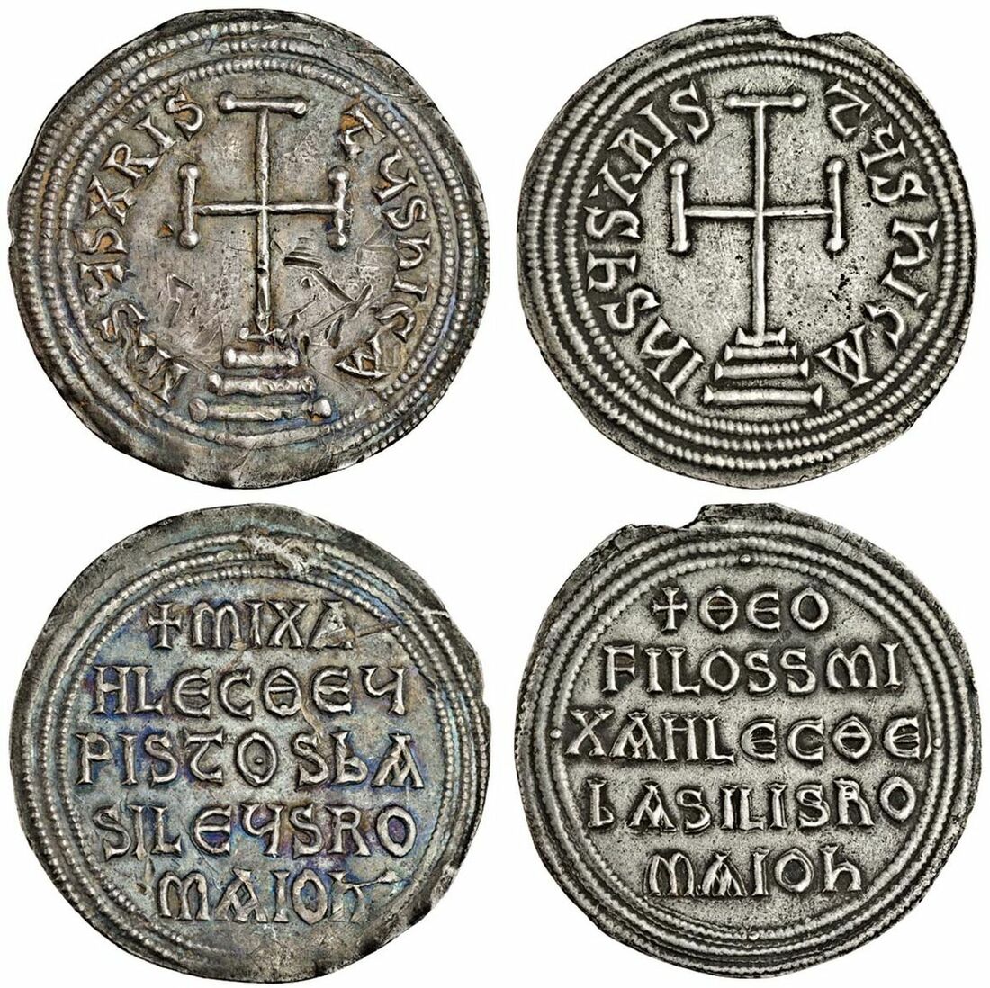 (x) The 'White Rose' Collection | Theophilus and Michael III (840-842), Miliaresion, Constantinople, cross potent on three steps, rev.