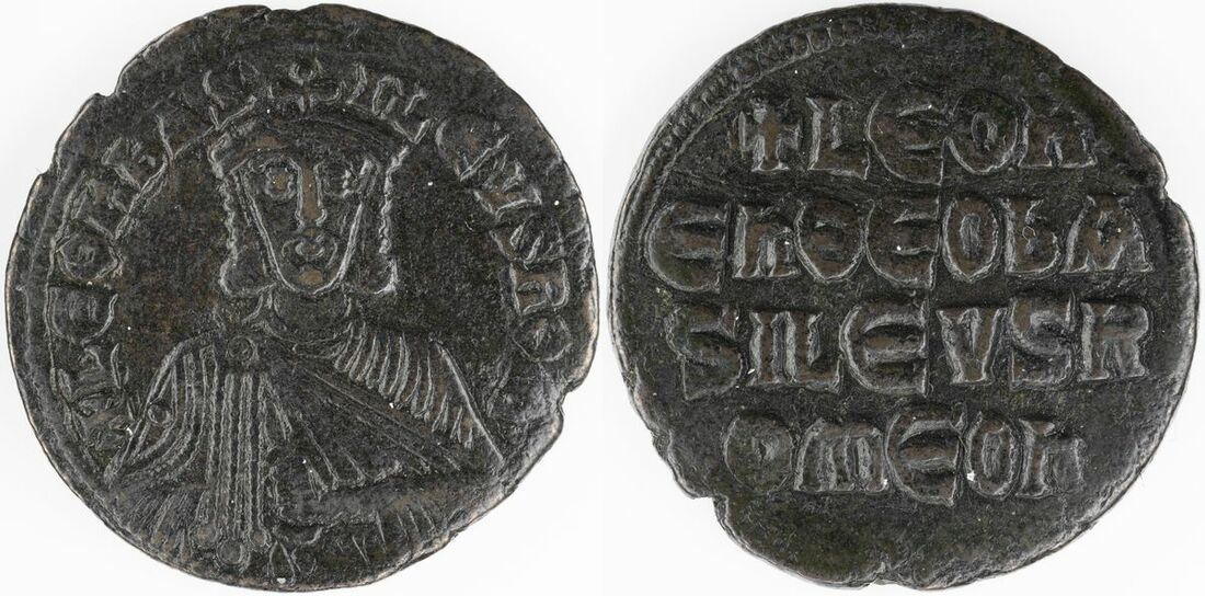 Byzantine Empire, Leo VI, 'The Wise (886-912) AE Follis, Constantinople, Crowned bust facing, wearing chlamys, holding akakia rev. Legend in four lines, 6.94g, (SB, 1729) Detailed and perfectly-centred, good very fine