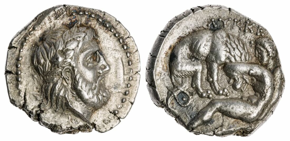 The 'Kyrios' Collection | Kingdom of Paeonia, Lykkeios (c. 356-335 BC) AR Tetradrachm, Laureate head of Zeus right rev. Herakles fighting the Nemean lion, 12.12g (SNG ANS 1019) Slightly worn but well-struck and toned, good very fine
