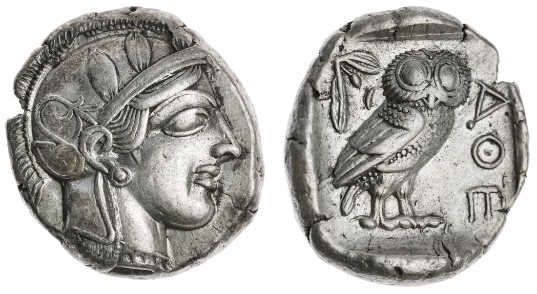 The 'Kyrios' Collection | Attica, Athens, AR Tetradrachm, c. 454-431 BC, Head of Athena right, wearing a crested Attic helmet rev.
