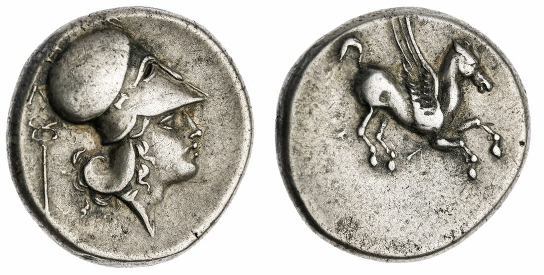 The 'Kyrios' Collection | Akarnania, Leukas, AR Tridrachm, c.350-324 BC, Pegasos flying right,