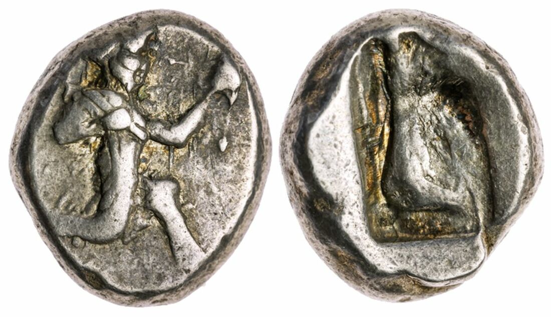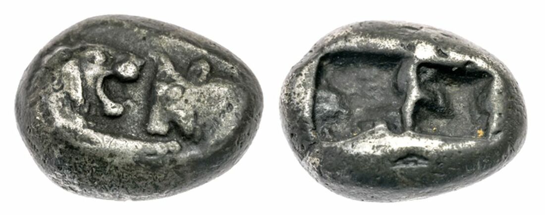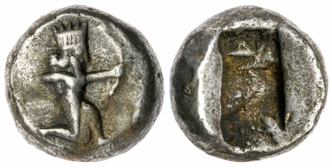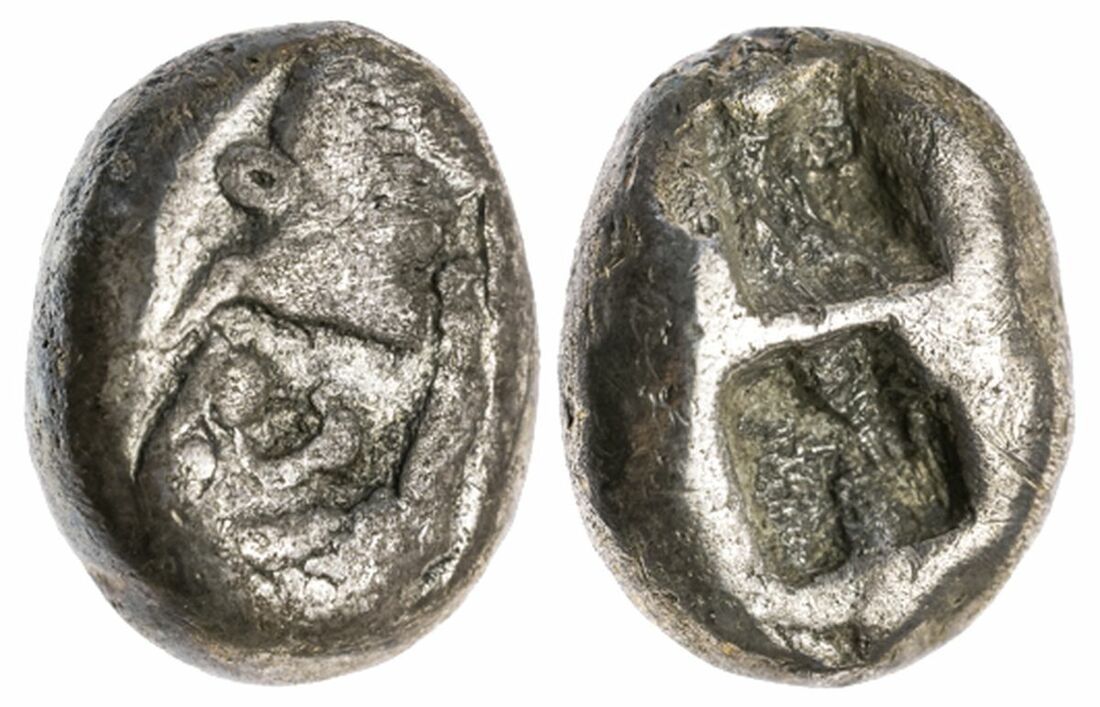 The 'Kyrios' Collection | A Selection of Lydian Silver (4): i) Kingdom of Lydia, time of Kroisos (c. 561-546 BC), AR Trite, Sardis, Foreparts of lion and bull confronted rev. two incuse square punches, 3.70g (Rosen 666) About very fine; ii) time of Kroisos, AR Trite, Sardis, Foreparts of lion and bull confronted rev. two incuse square punches, 16.80g, (Rosen 666) Good fine to very fine; iii) Under Persian Rule, Time of Darius I, AR Siglos, (549-486 BC) Sardis, c. 500-485, Great King kneeling right, firing bow, rev . Oblong punch, 5.41g (Carradice type II) Toned, very fine; iv) Persian Rule, Time of Darius I, AR Siglos, (549-486 BC) Sardis, c. 500-485, Great King in kneelnig-running stance right, firing bow, rev. Oblong punch, 5.41g (Carradice type IIIa) Toned, soft strike, near good fine(4)