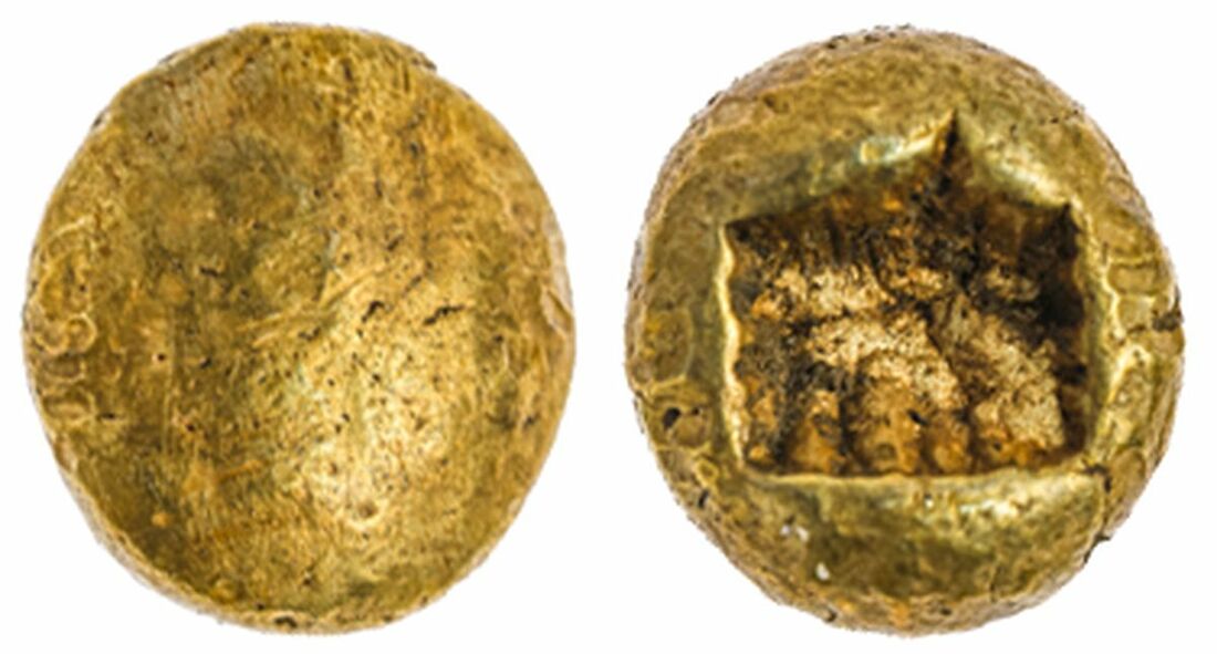 The 'Kyrios' Collection | Ionia, Uncertain, EL Hemihekte, c. 650-600 BC, Blank convex surface rev. incuse square, 1.19g (SNG von Aulock 7763) Bright, slightly porous, about very fine