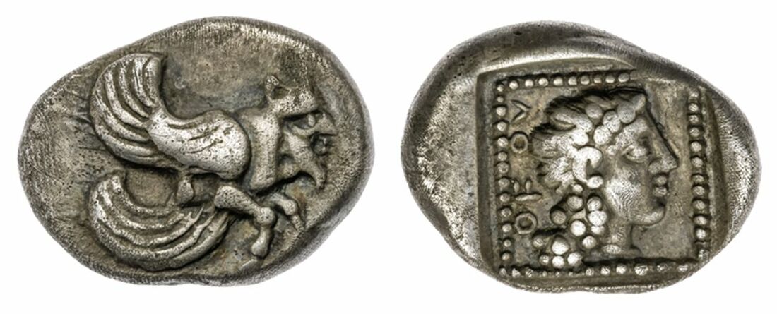 The 'Kyrios' Collection | Lykia, Uvug (470-440 BC) AR Tetrobol, Forepart of winged, man-headed bull advancing right rev.