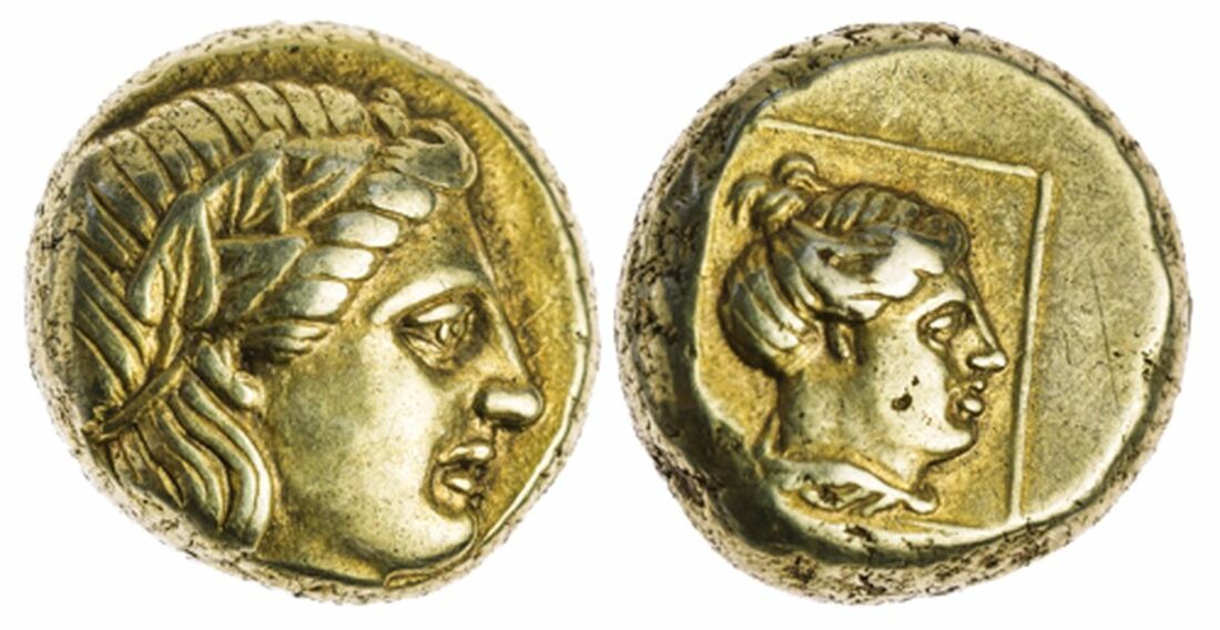 The 'Kyrios' Collection | Lesbos, Mytilene, EL Hekte, c. 377-326 BC, Laureate head of Apollo right rev. Female head (Artemis?) right within square linear frame, 2.61g (Bodenstedt 95) Detailed and lustrous, good very fine