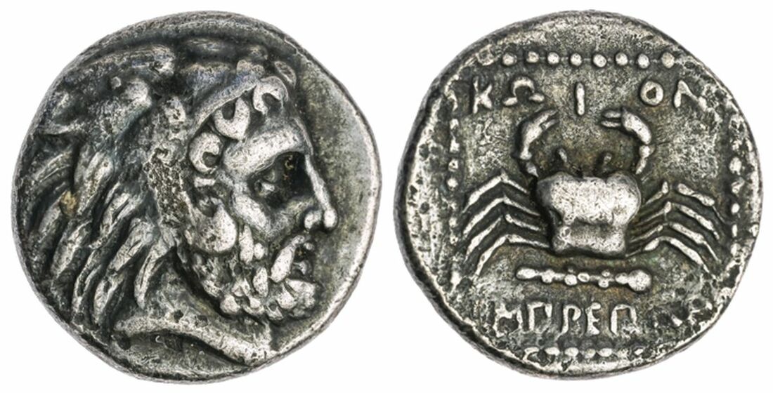 The 'Kyrios' Collection | Carian Islands, Kos, AR Drachm, c. 3rd Century BC, Head of Herakles right, wearing lion's skin, rev.