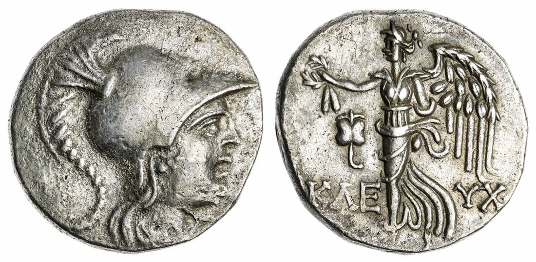 The 'Kyrios' Collection | Pamphylia, Side, AR Tetradrachm, Magistrate Kleuch-, c. 145-125 BC, Head of Athena right, wearing crested Corinthian helmet rev.