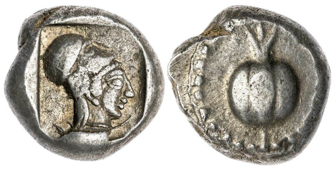 The 'Kyrios' Collection | Pamphylia, Side, AR Stater, c. 460-430 BC Pomegranate within dot-and-cable border rev. Head of Athena right, wearing raised Corinthian helmet, earring and necklace, all within incuse square, 11.01g (Atlan 16 (O15/A14); SNG von Aulock 4762) Pleasingly toned and very fine