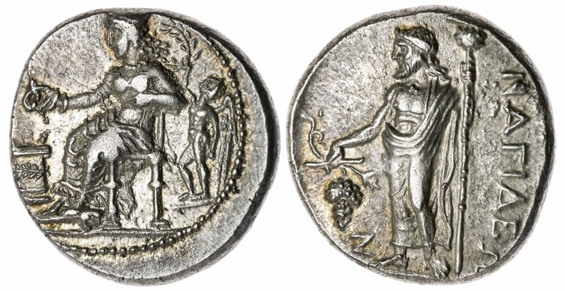 The 'Kyrios' Collection | Cilicia, Nagidos AR Didrachm, c. 356-347 BC, Aphrodite seated left, making sacrifice over altar, Eros standing behind, holding branch rev.