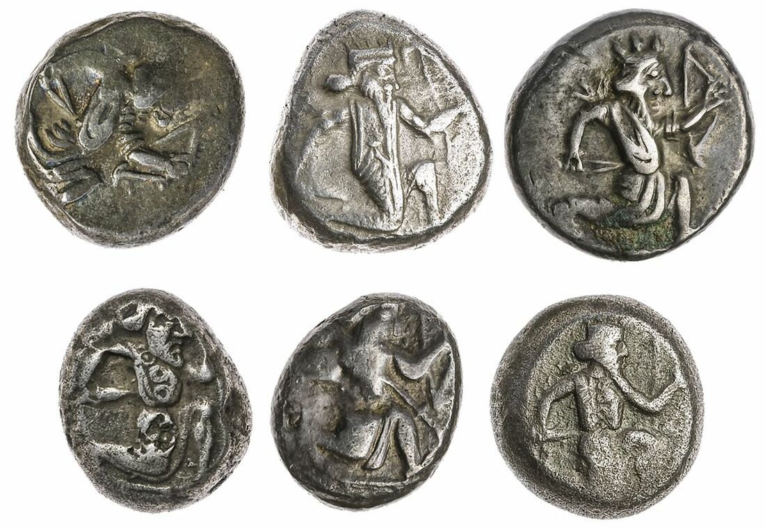 The 'Kyrios' Collection | A Selection of Persian Sigloi, (6) (515-400 BC) AR Sigloi, Sardis, All 'Bow and Dagger' type with Great-King in kneeling-running stance right, holding bow and dagger rev. Rectangular incuse punch, (6): i) 5.55g, Lustrous, very fine; ii) 5.42g, Off-centre, good fine; iii) 5.42g, Good fine; iv) 5.53g, Cleaned, but detailed and very fine; v) 5.53g, Toned, but smoothed at edges, good fine to near very fine; vi) 3.41g, Lustrous, though on a short flan, good fine, (6).