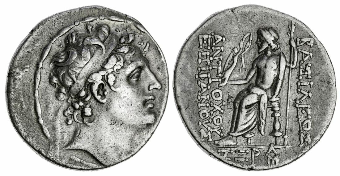 The 'Kyrios' Collection | Seleukid Kingdom of Syria, Antiochos IV Epiphanes (175-164 BC) AR Tetradrachm, Antioch-on-the-Orontes, posthumous issue, dated SE 167=146/145 BC, Diademed head right rev.