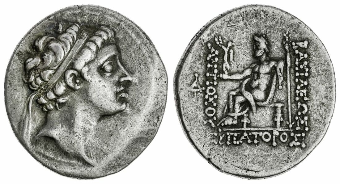 The 'Kyrios' Collection | Seleukid Kingdom of Syria, Antiochos V Eupator (164-162 BC) AR Tetradrachm, Antioch-on-the-Orontes, Diademed head right rev.