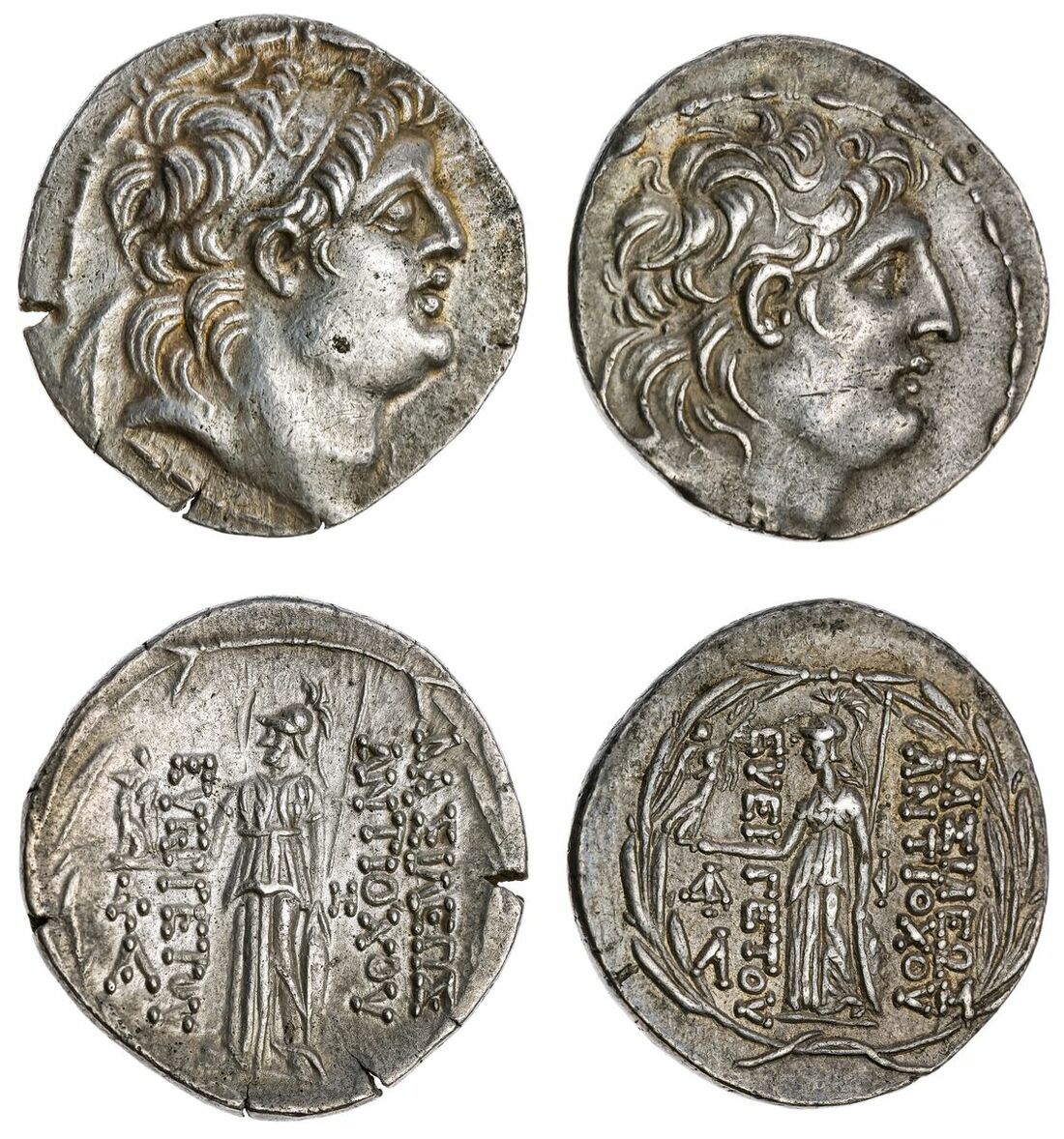 The 'Kyrios' Collection | Seleukid Kingdom of Syria, Antiochos VII Euergetes (138-129 BC) AR Tetradrachm (2): i) Antioch-on-the-Orontes, Diademed head right rev.