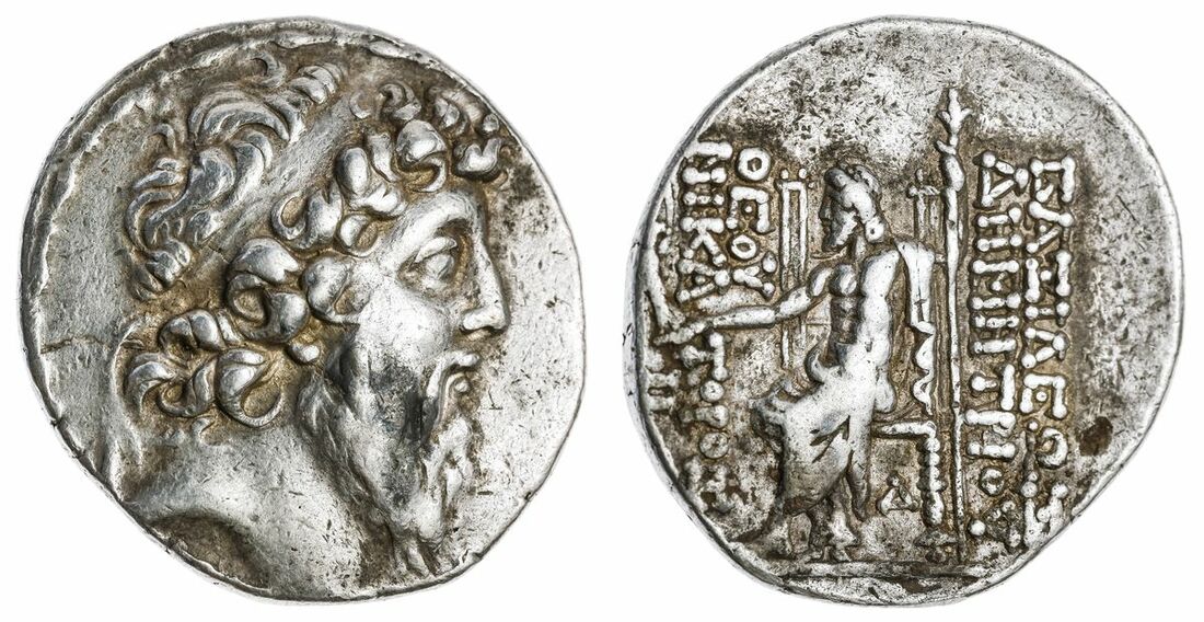 The 'Kyrios' Collection | Seleukid Kingdom of Syria, Demetrios II Nikator, Second reign (129-125 BC) AR Tetradrachm, Antioch, c. 129/8, Diademed and bearded head right rev.