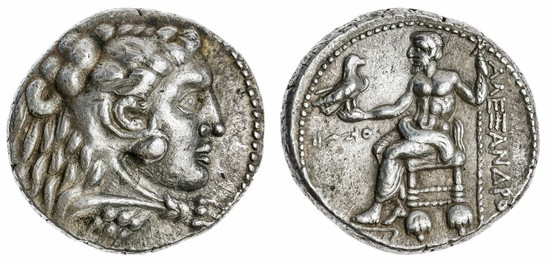 The 'Kyrios' Collection | Ptolemaic Kingdom of Egypt, Ptolemy I Soter (323-305 BC) AR Tetradrachm, Ake, 318 BC, Head of Heracles right clad in lion's skin, rev. ALEXANDROY Zeus Aetephoros enthroned left, holding vertical sceptre in left hand, Phoenician date (32) in left field 17.18g (Price 3283) well centred, nicely detailed very fine
