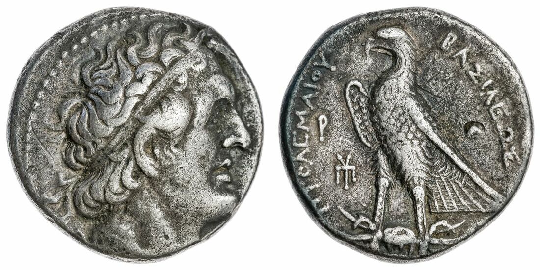 The 'Kyrios' Collection | Ptolemaic Kingdom of Egypt, Ptolemy I Soter (305-282 BC), AR Tetradrachm, diademed head of Ptolemy right wearing aegis around neck rev. PTOLEMAIOY BASILEOS, eagle standing facing left on thunderbolt, two monograms in the left field,13.83g (SNG Cop-72) residually lustrous, softening at higher points, very fine