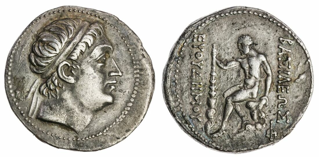 The 'Kyrios' Collection | Kingdom of Baktria, Euthydemos I (c. 230-205 BC) AR Tetradrachm, Balkh D, Diademed head right rev.