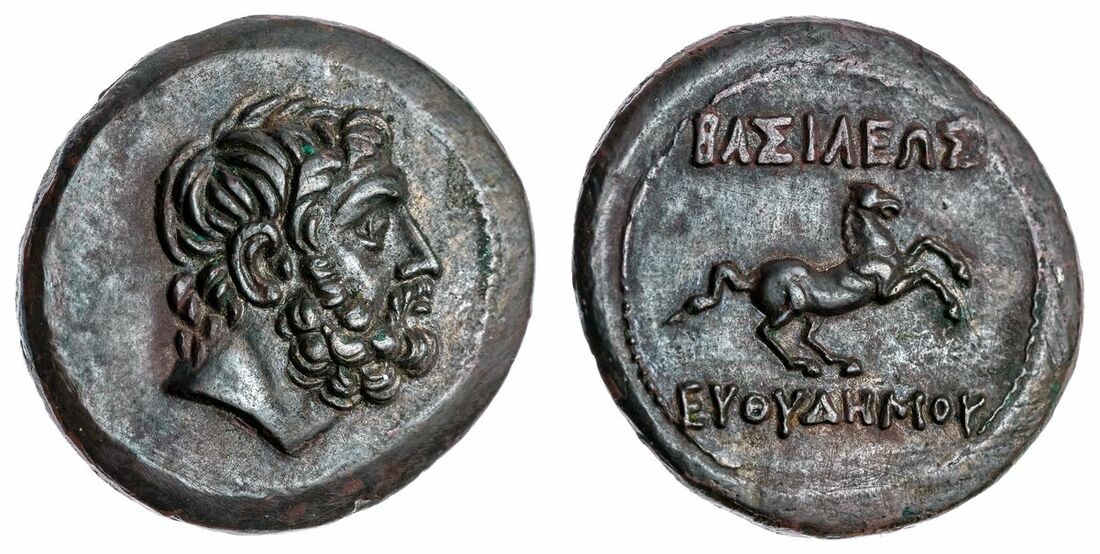 The 'Kyrios' Collection | Kingdom of Baktria, Euthydemos I (c. 230-190 BC) AE Double-unit, Balkh, Bearded head of Herakles right rev.