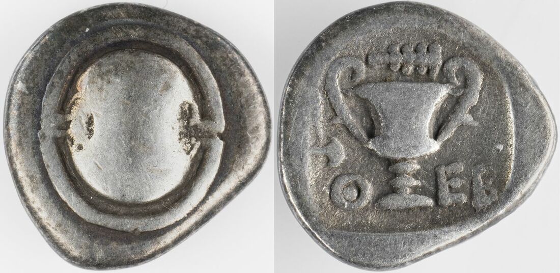 Boeotia, Thebes, AR Hemidrachm, c.379-391 BC, Boeotian shield, rev.