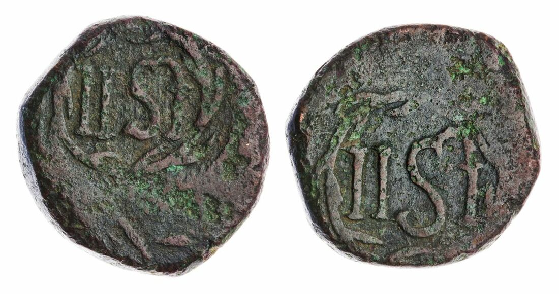 (x) Sri Lanka (Ceylon), Dutch Colony (VOC), AE 2-Stuivers, 22.22g, wreath type, undated (1660-1720), type Aa, leaves of wreath rotate to left (Scholten 1289; KM 20), one side struck a little off centre, very fine