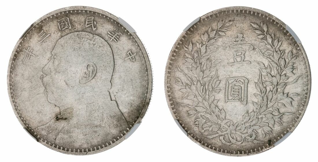 (x) NGC XF DETAILS | China, Republic, 'Fatman' Dollar, Year 3 (1914), Yuan Shih Kai, milled edge, 26.81g (KM Y# 329), cleaned and lightly contact marked, otherwise now with hints of toning, very fine, in NGC holder, graded XF DETAILS, harshly cleaned (Cert. #6769445-017)
