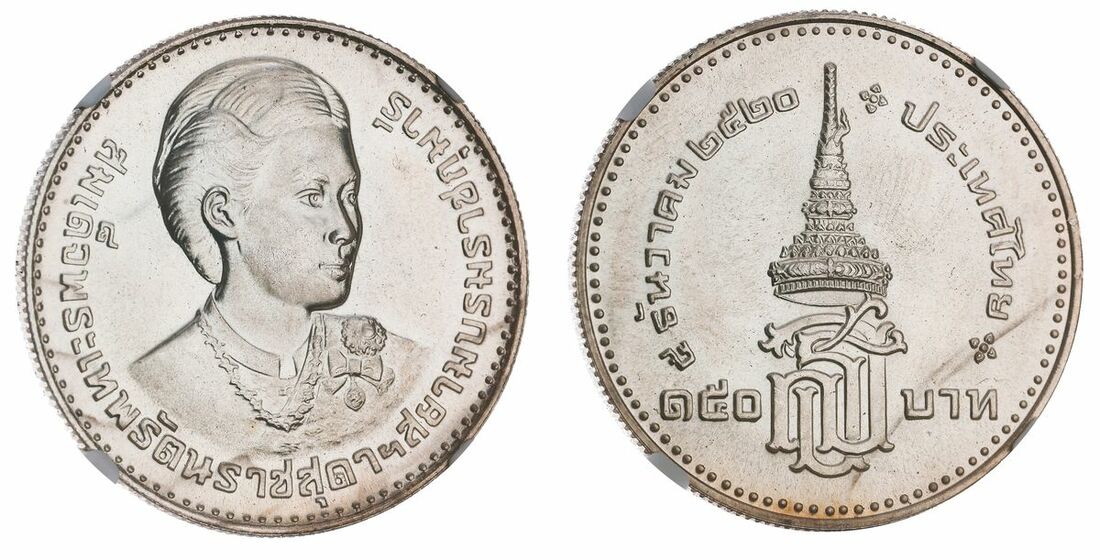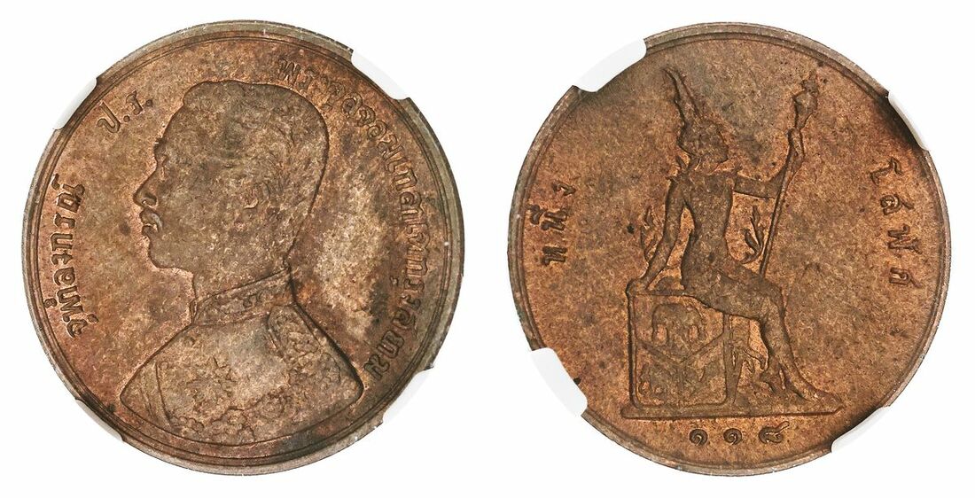 (x) NGC MS63 BN | Thailand, Rama V (1868-1910), Half Att, 1899 [RS118], plain edge, 5h (KM Y 22), light traces of mint red to the peripheries, extremely fine; Rama IX (1946-2016), 'Sirindhorn Investiture' 150 Baht, 1977, milled edge, 12h (KM 125), with a full cartwheel lustre, as struck (2)