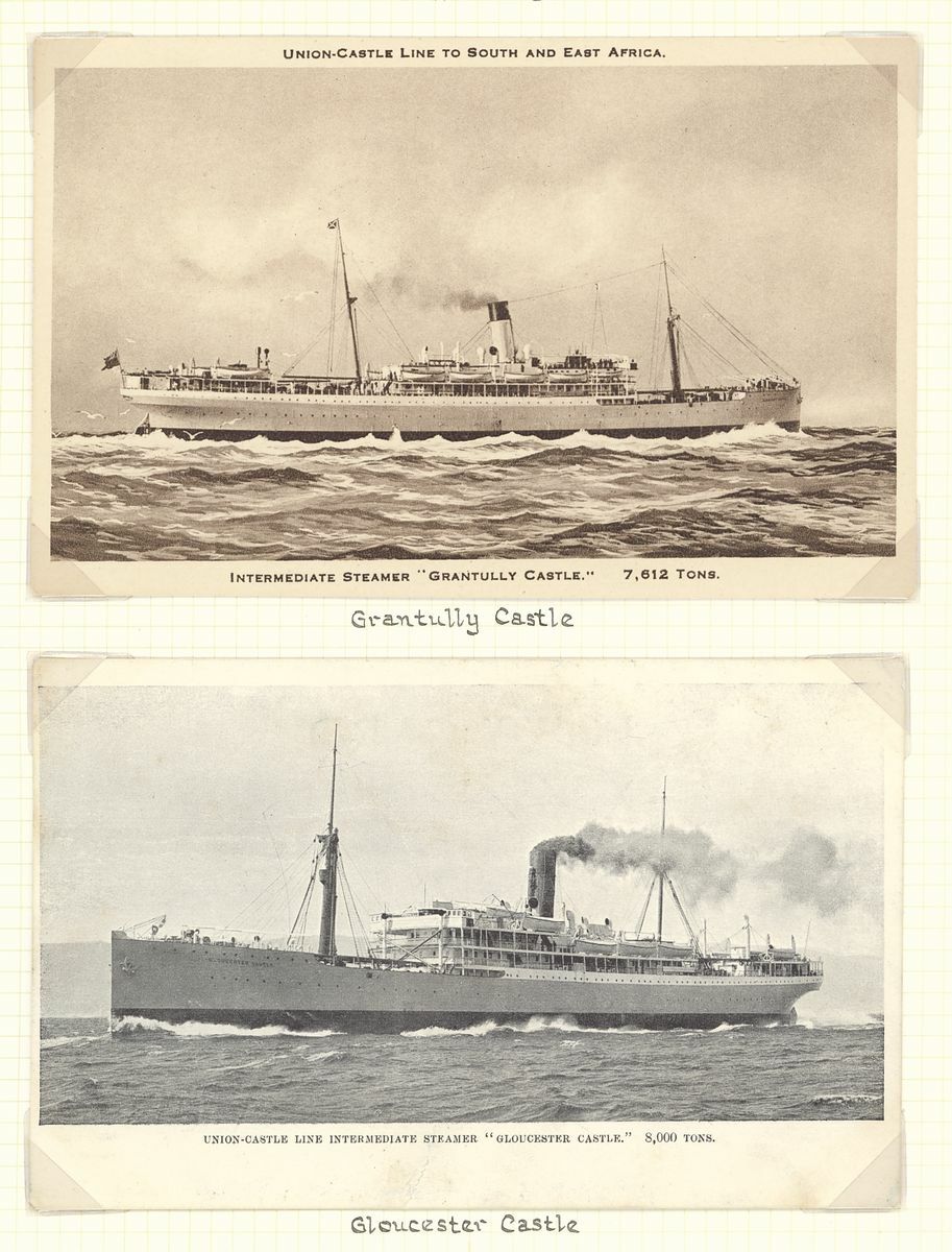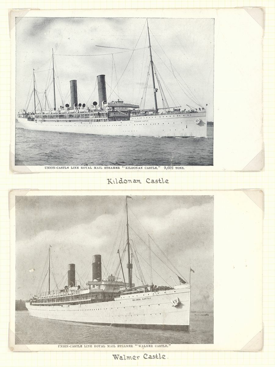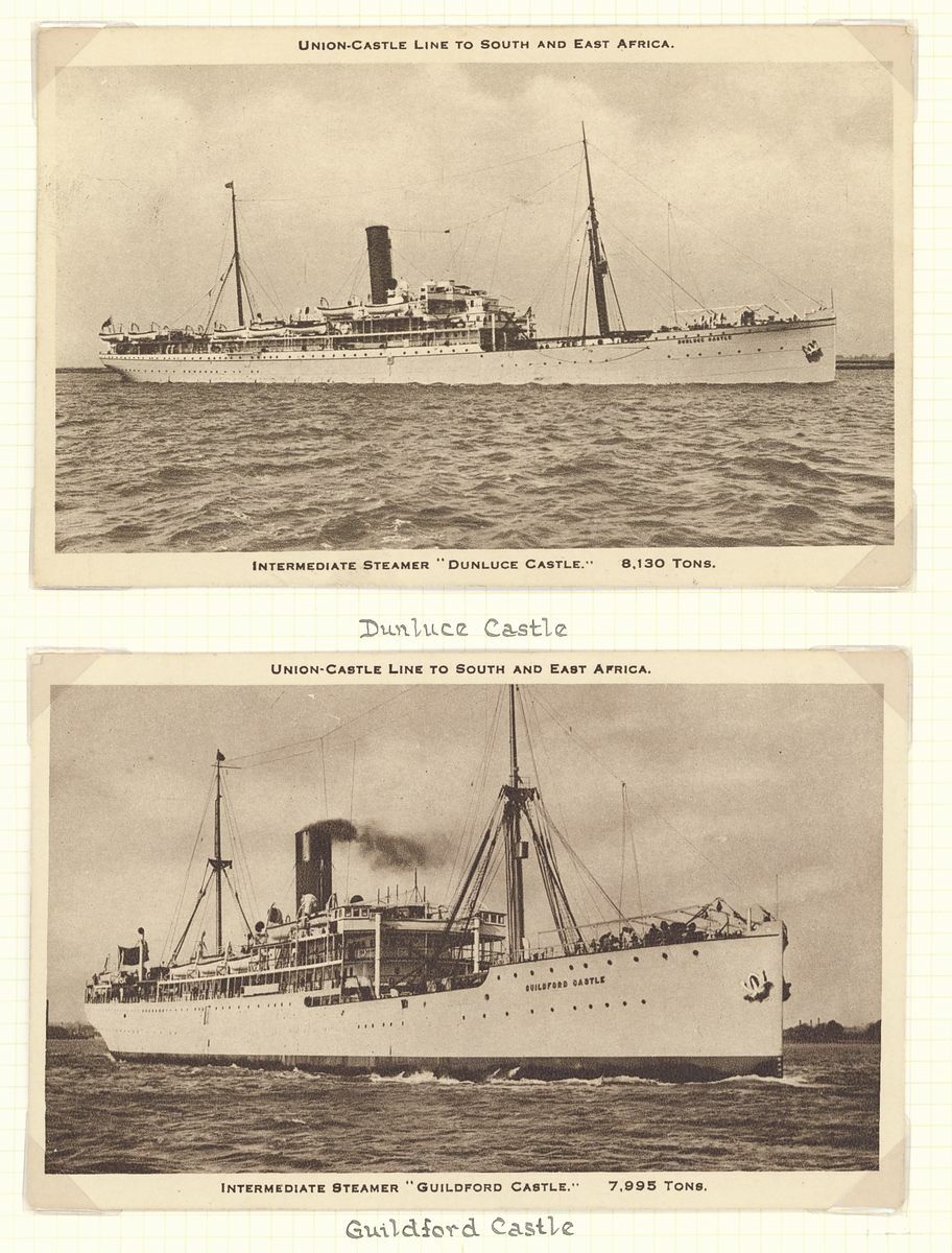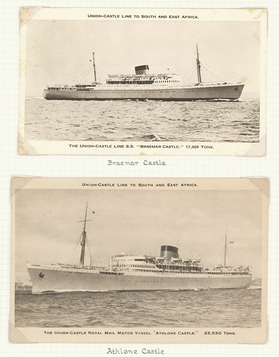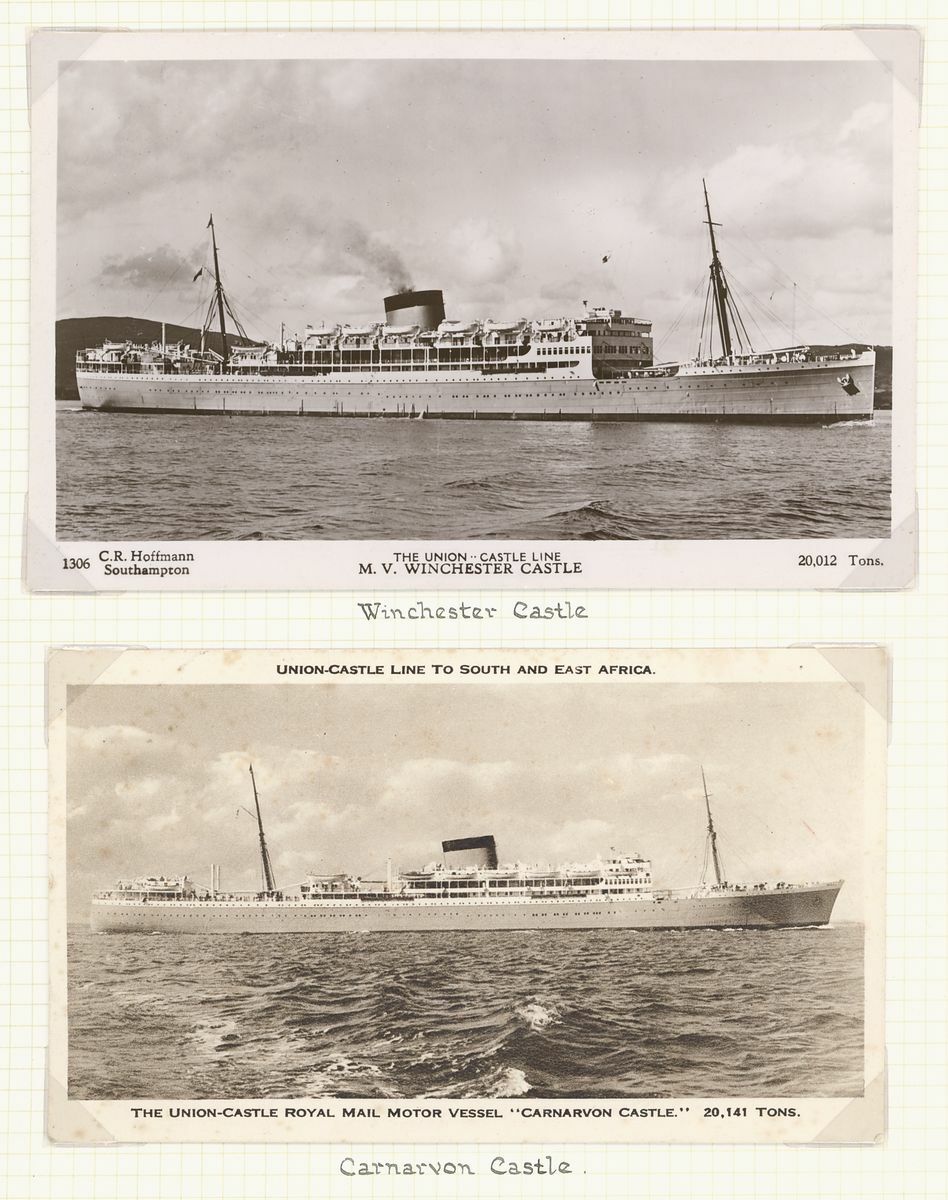 1924-33 A series of twelve cards showing Union Castle Line Royal Mail Steamers which called at Ascension, comprising Aramadale Castle, Athlone Castle (2, one coloured), Braemer Castle, Carnavon Castle, Dunluce Castle, Gloucester Castle, Grantully Castle, Guildford Castle, Kildonan Castle, Stirling Castle, Walmer Castle and Winchester Castle; condition generally fine.