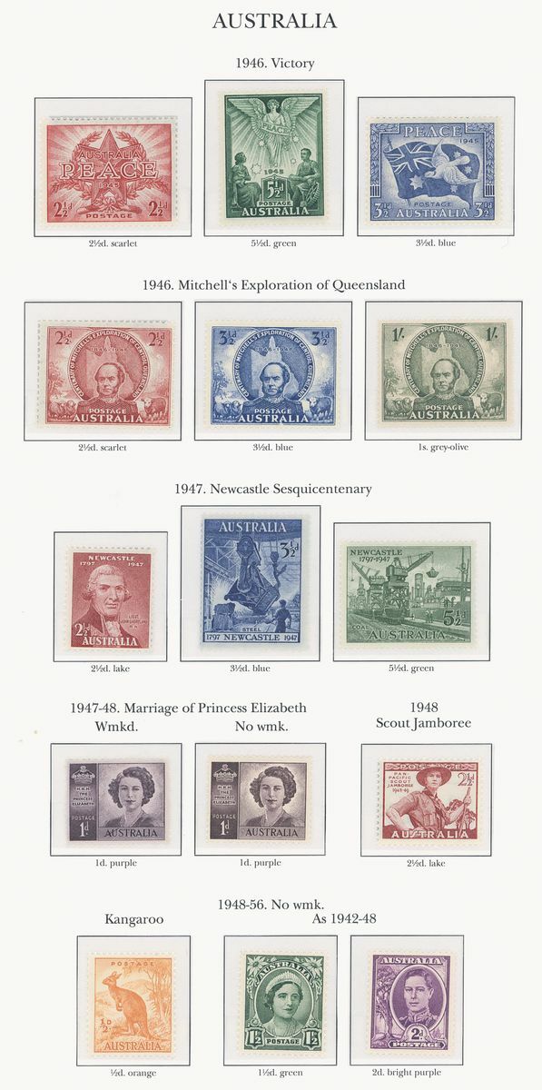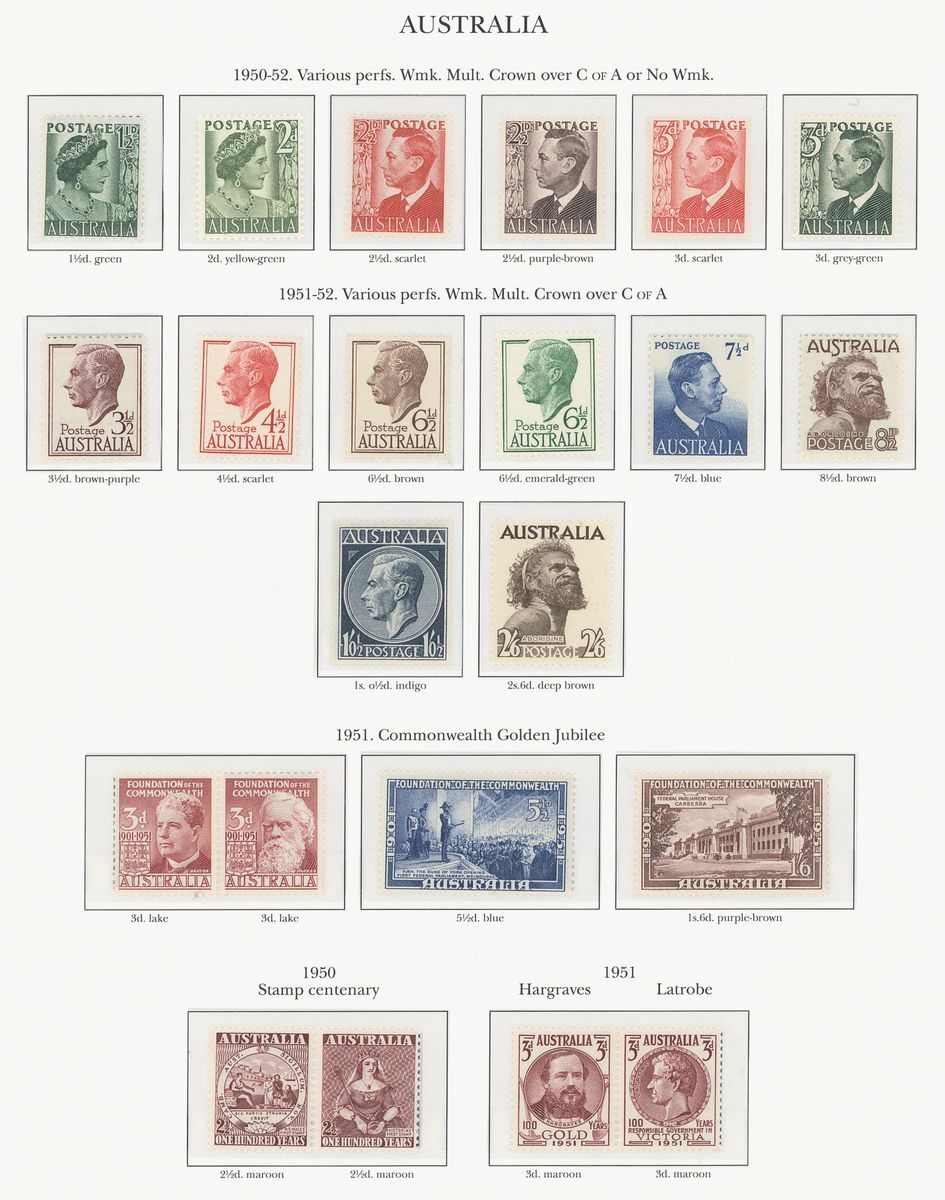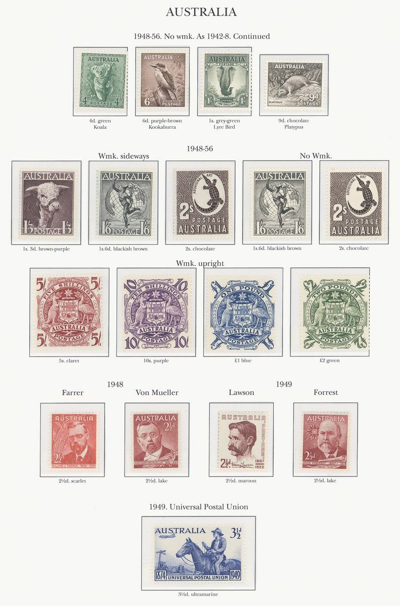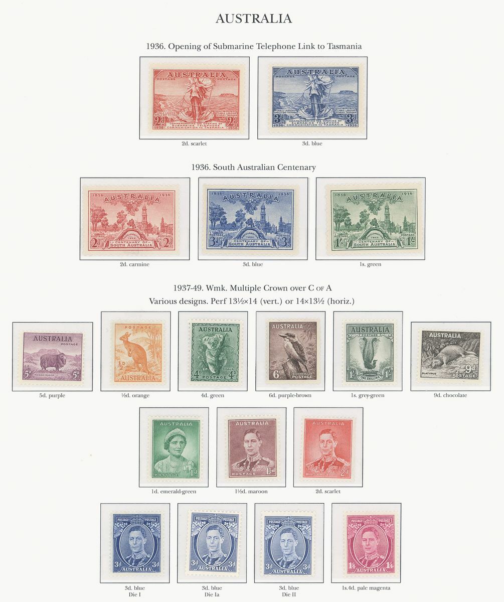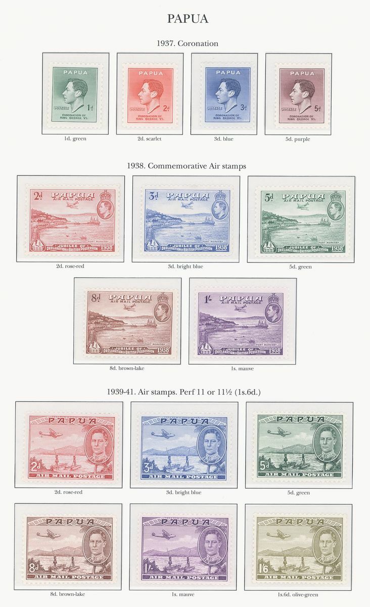 1936-51 mostly unmounted mint collection arranged on twelve pre-printed KGVI Stanley Gibbons album pages, complete for all the spaces, though a couple of gaps filled with not the appropriate stamp, including postage dues and B.C.O.F Japan, also New Guinea comprising 1939 Air set, Norfolk and Papua, generally fine. S.G. £2,200+