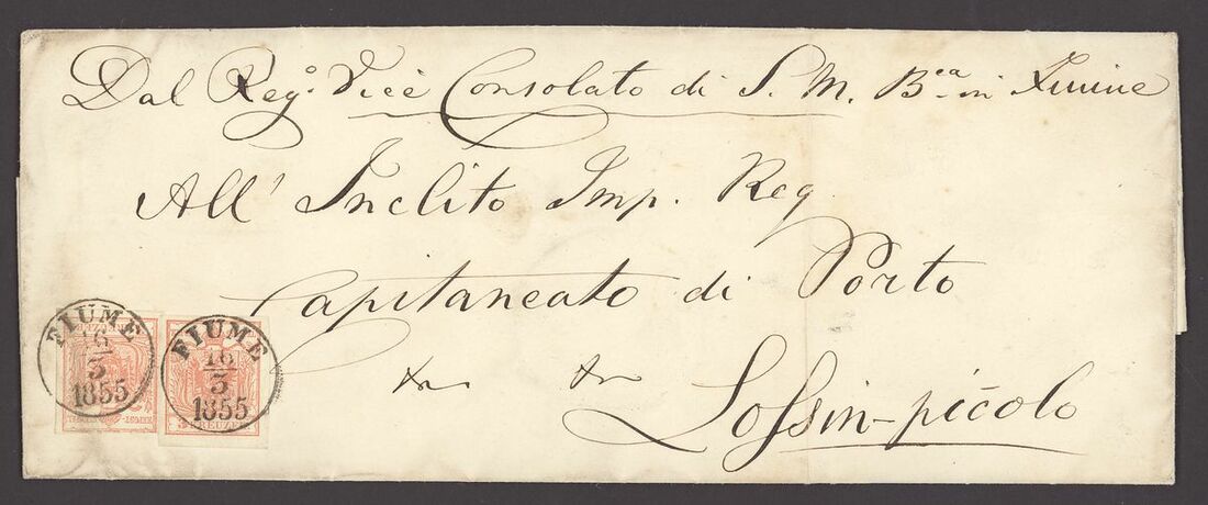 1855 (16 March) entire letter franked with 3kr. (2) from Fiume, by "