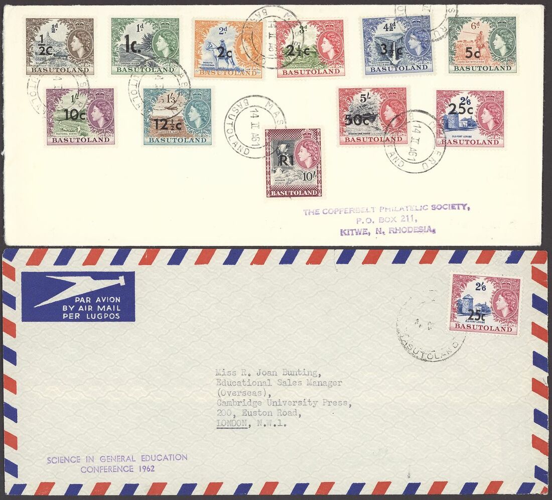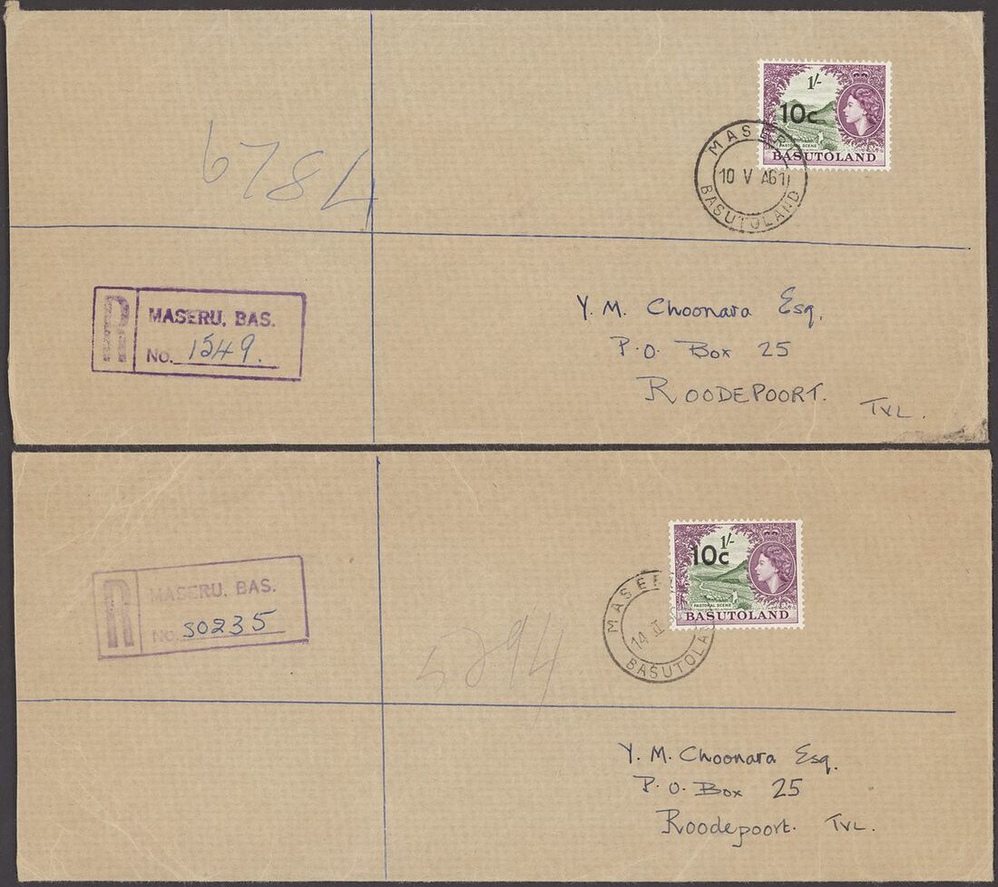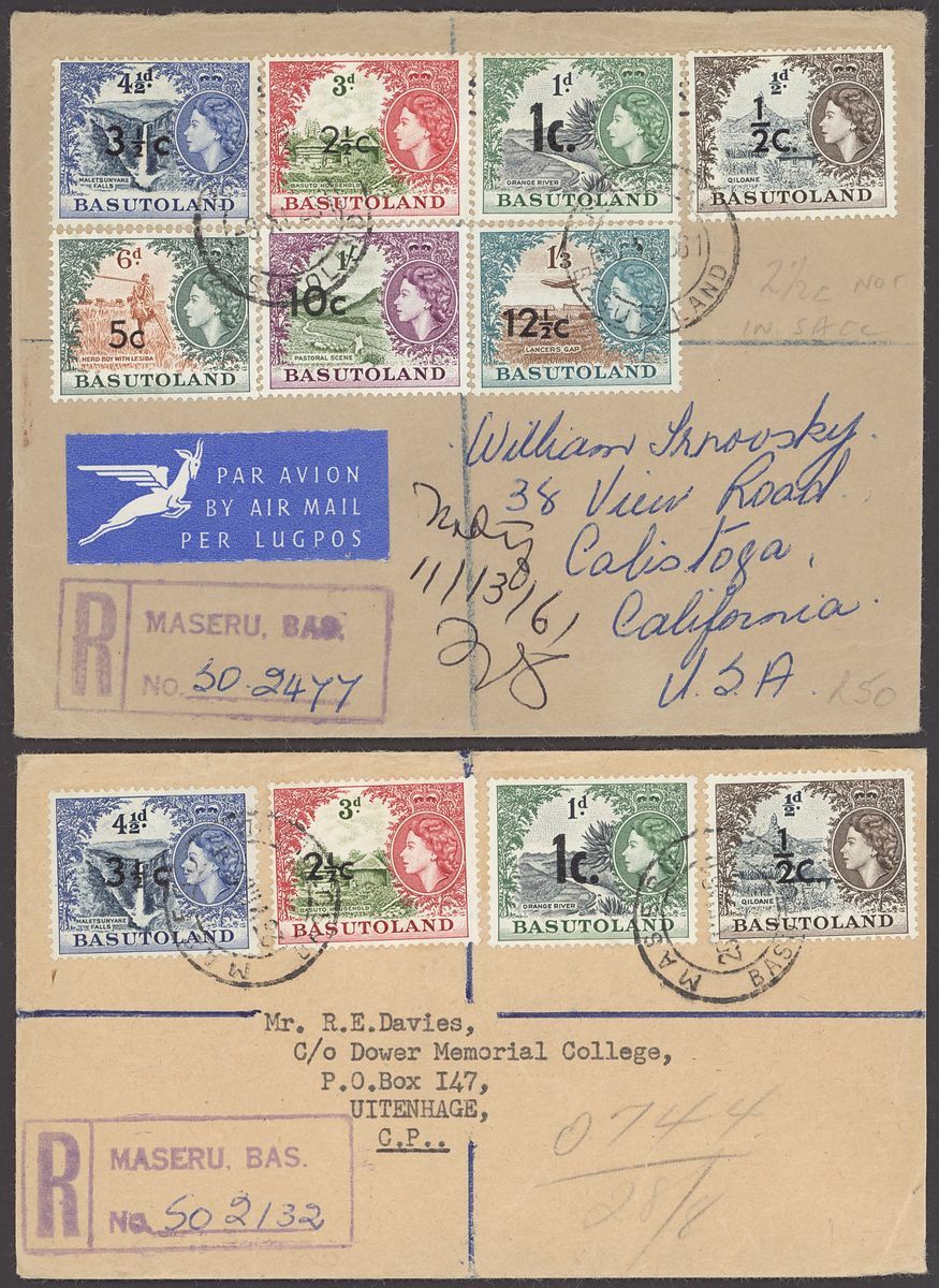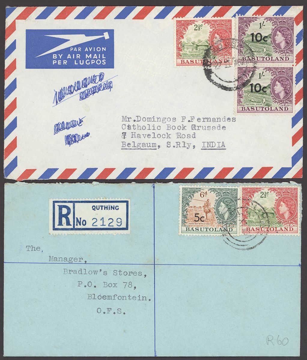 1961 Decimal surcharge issue, a selection of envelopes (19, seven registered) bearing a variety of frankings, two with sets of eleven, one with four values to 10c. on 1/- from Mamathes, eight commercial with one to India, one to England at 25c. on 2/6d. and one with 1r. on 10/- Type III; also 1959 ½d. on 2d. pair and a pair and a block of four on two covers. An attractive group