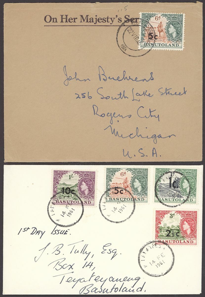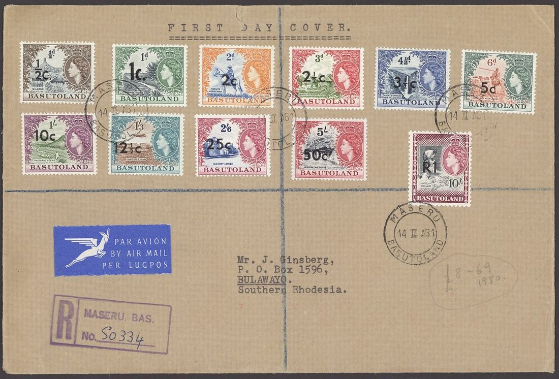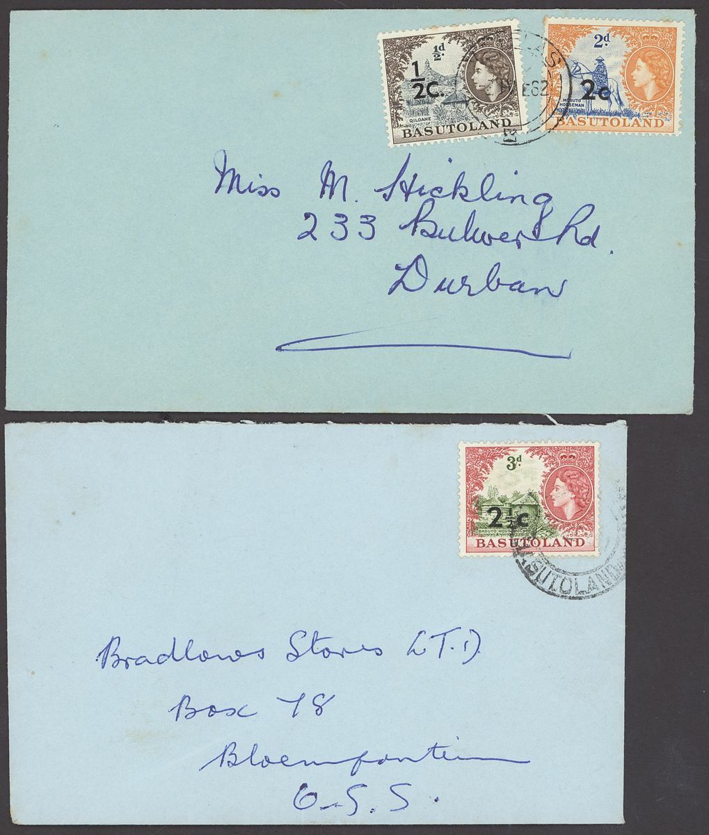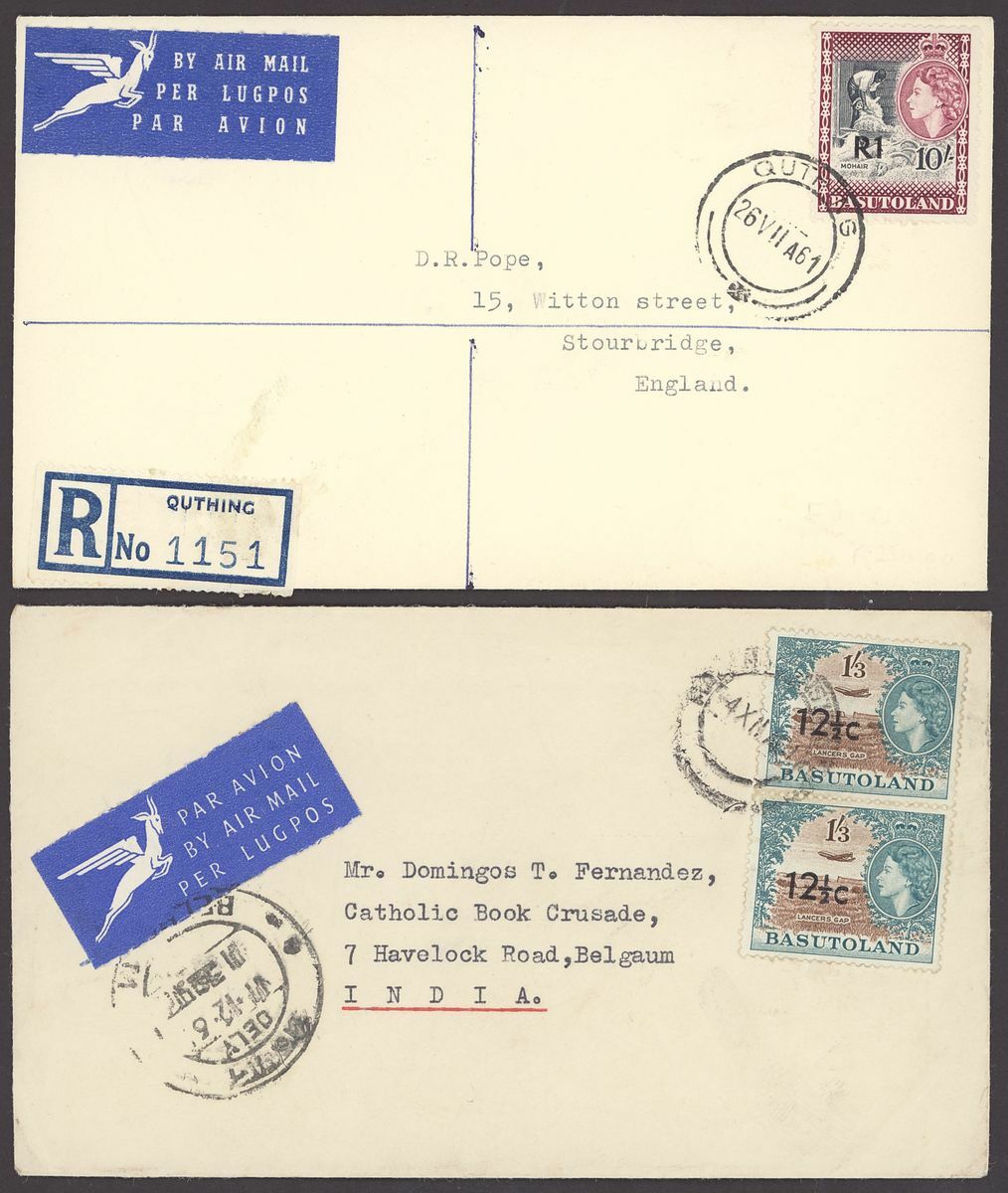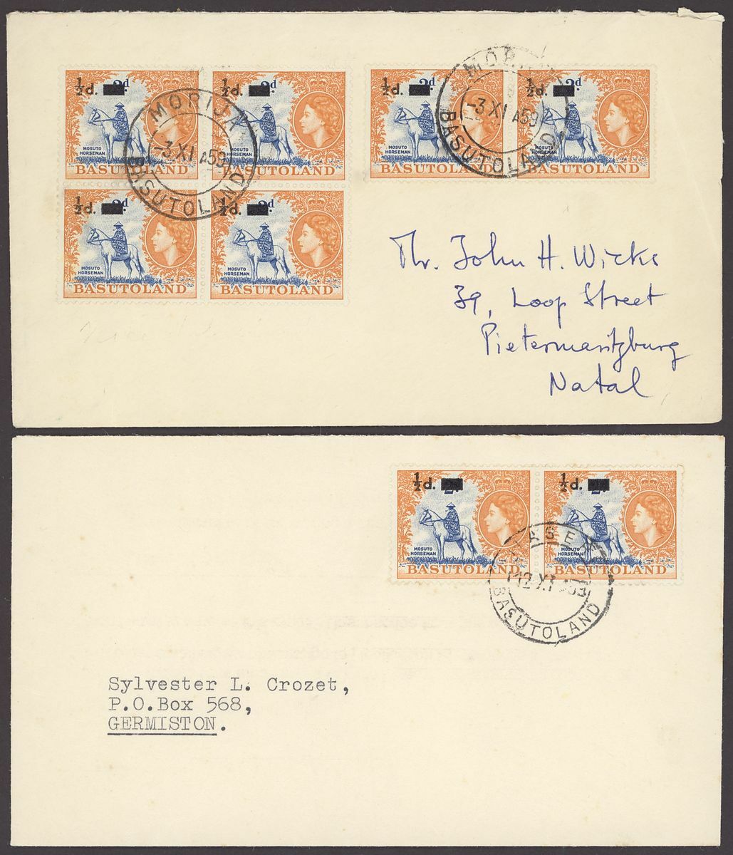 1961 Decimal surcharge issue, a selection of envelopes (19, seven registered) bearing a variety of frankings, two with sets of eleven, one with four values to 10c. on 1/- from Mamathes, eight commercial with one to India, one to England at 25c. on 2/6d. and one with 1r. on 10/- Type III; also 1959 ½d. on 2d. pair and a pair and a block of four on two covers. An attractive group
