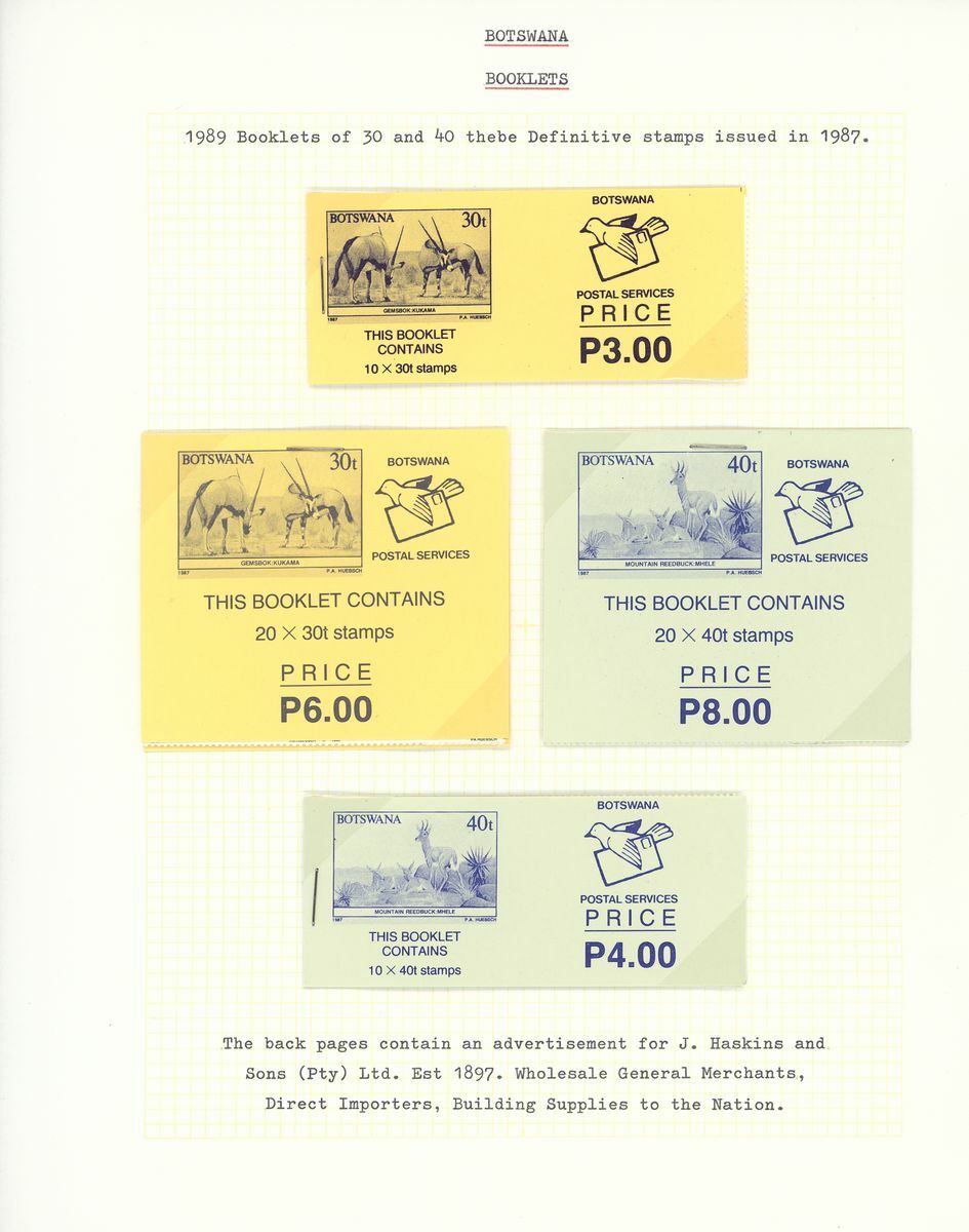 1989-92 set of sixteen, 1993-94 set of eighteen, 1996 1p. (both) and one with plain white cover and 2002-04 5p. set of twelve; fine and a scarce group of all those issued. S.G. SB1-SB48, £700. (49)