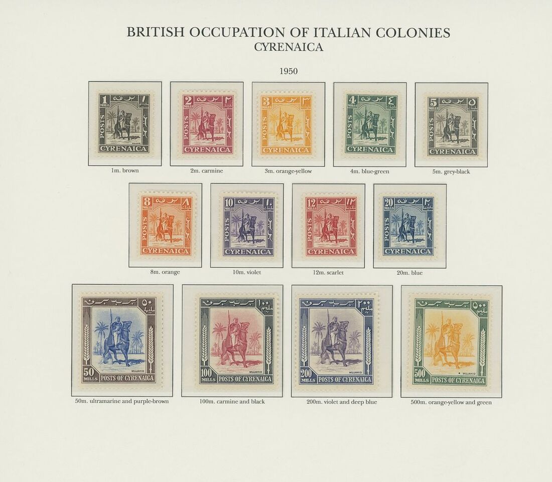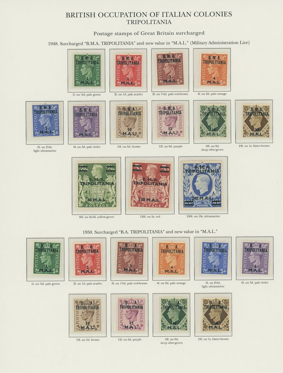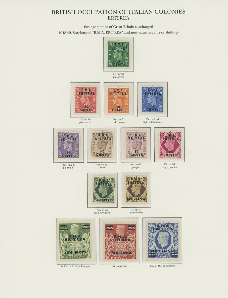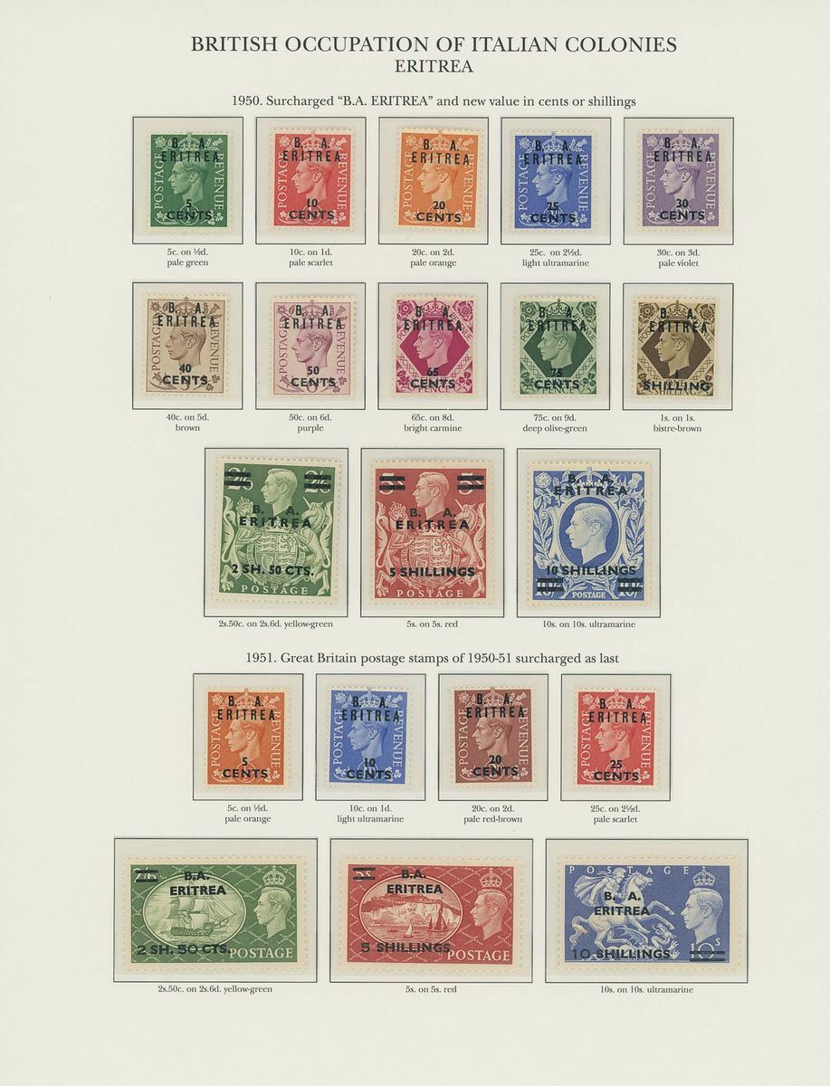 1942-50 unmounted mint collection arranged on twelve pre-printed KGVI Stanley Gibbons album pages, complete for all the spaces comprising Middle East Forces, Cyrenaica, Eritrea, Somalia and Tripolitania, including Postage Dues, generally fine. S.G. £2,300+