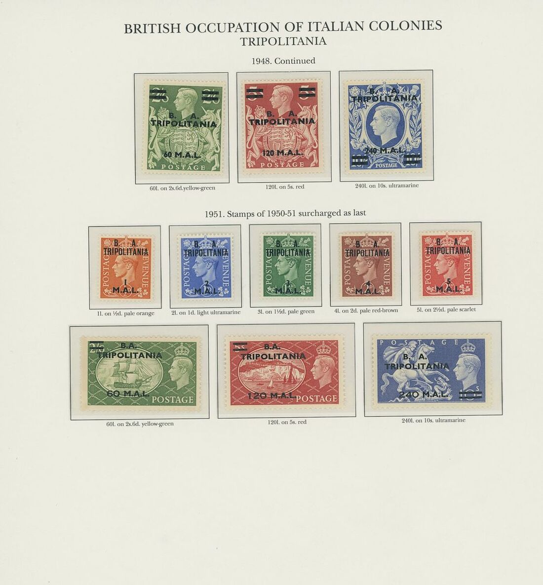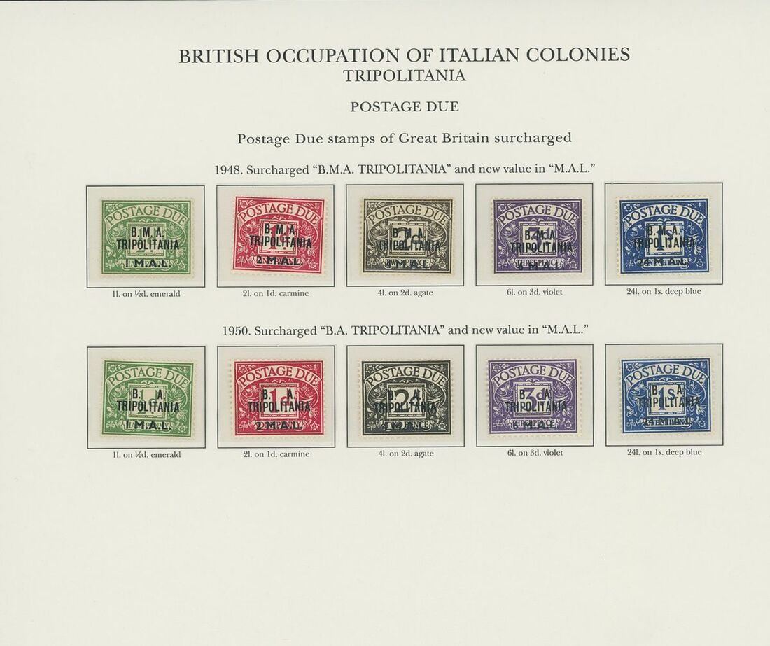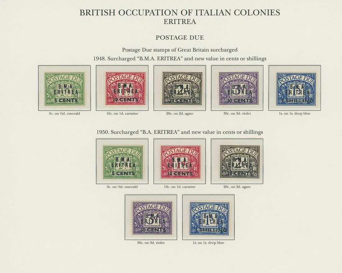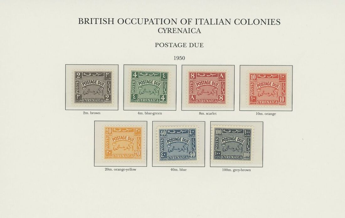 1942-50 unmounted mint collection arranged on twelve pre-printed KGVI Stanley Gibbons album pages, complete for all the spaces comprising Middle East Forces, Cyrenaica, Eritrea, Somalia and Tripolitania, including Postage Dues, generally fine. S.G. £2,300+