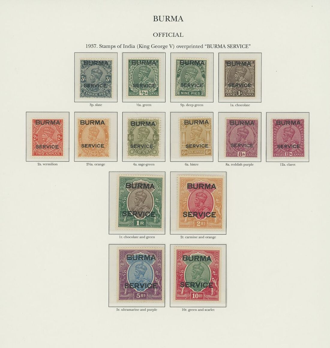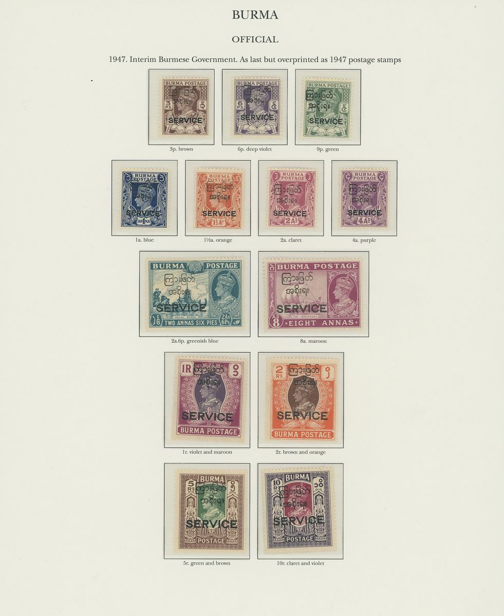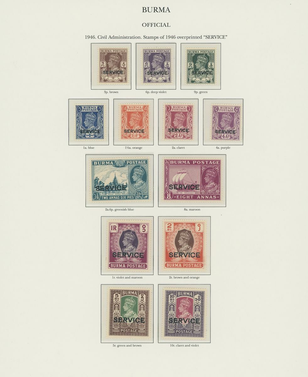 1937-52 mostly unmounted mint collection arranged on eight pre-printed KGVI Stanley Gibbons album pages, complete for all the spaces from 1938 for the Definitives and from 1937 for the Officials, good to fine. S.G. £1,900+