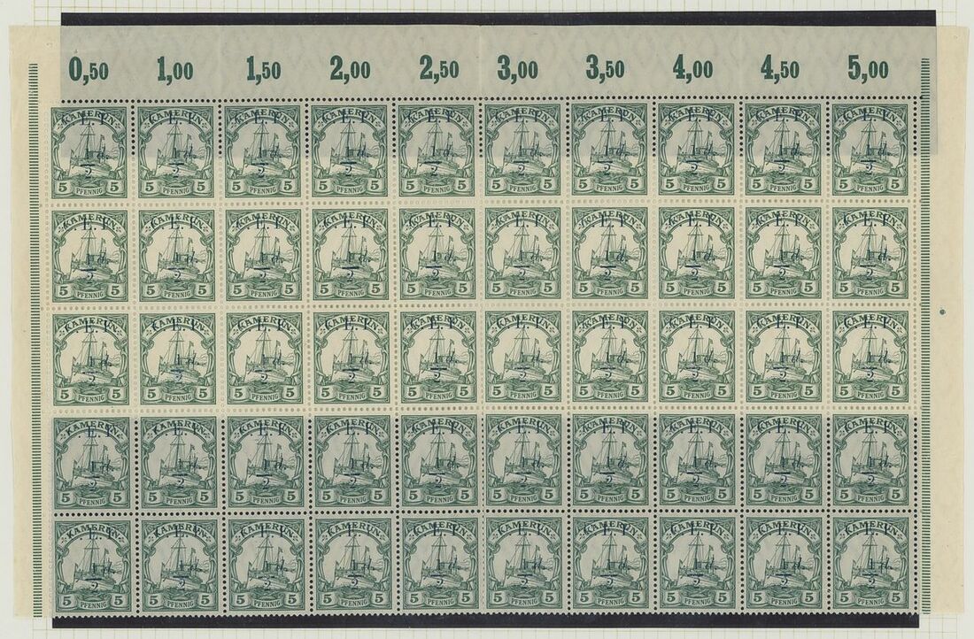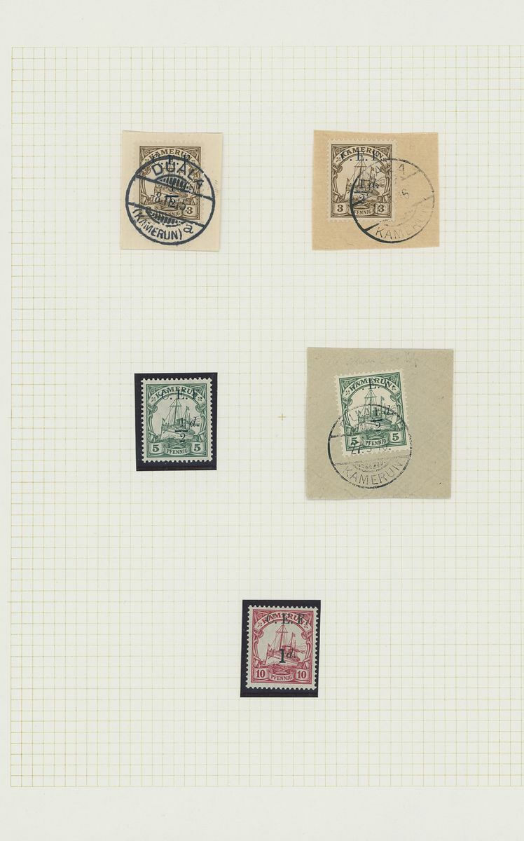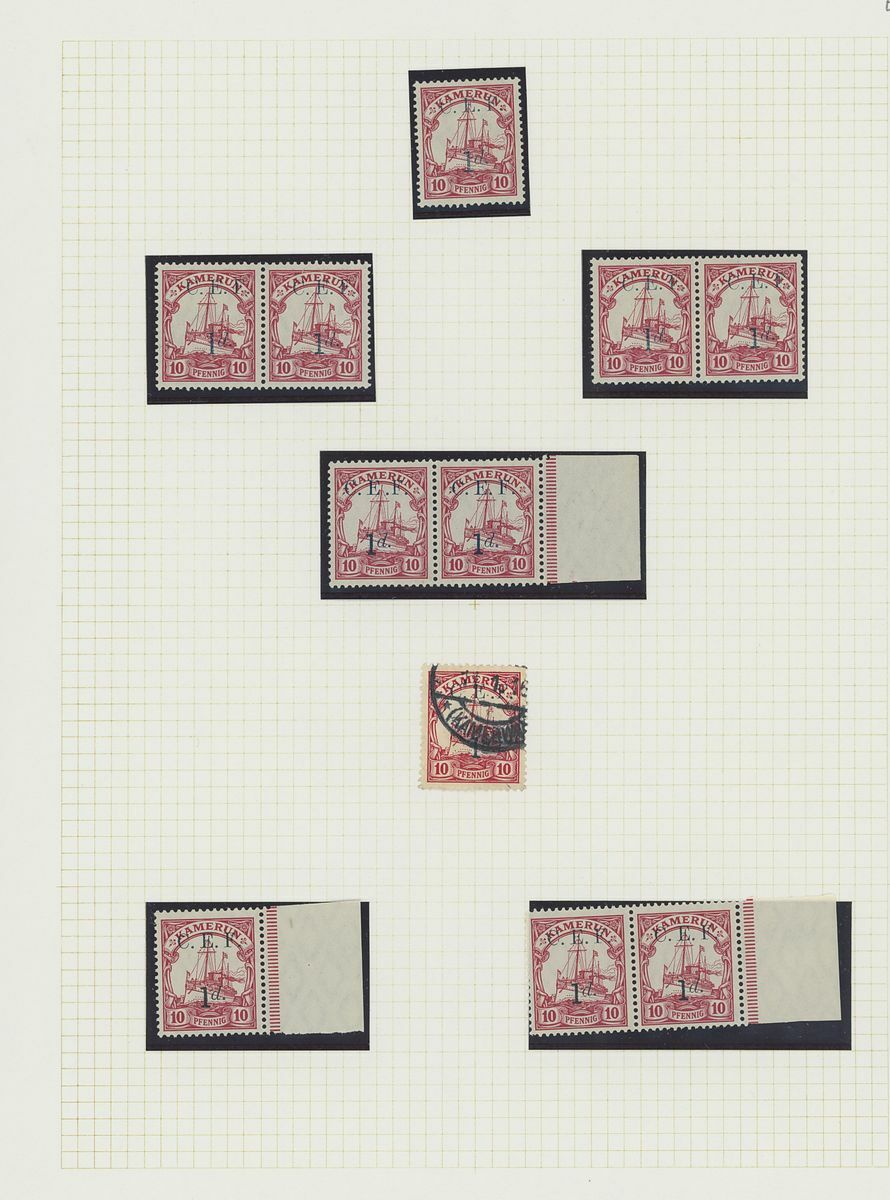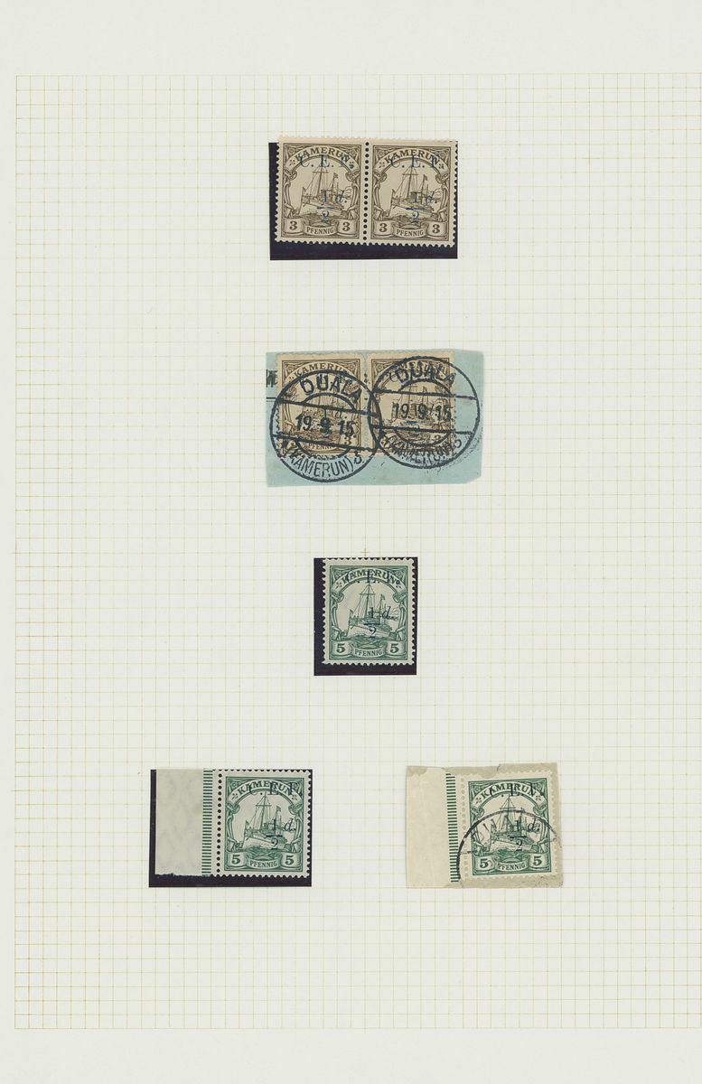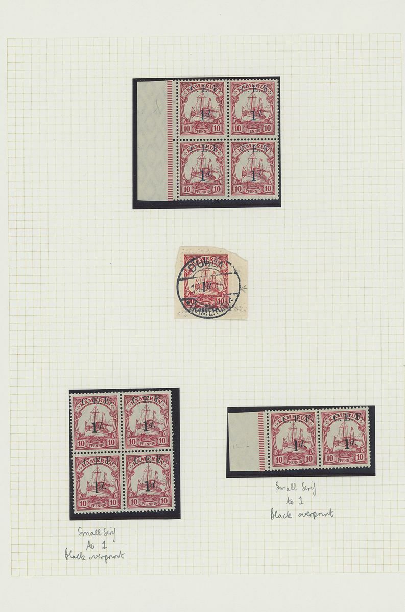 1915 duplicated mint and used collection neatly arranged on fifteen written up album pages including a full set to 5/- mint, an extra 5/- mint, ½d. on 5pf. a sheet divided in two blocks of fifty mint, 1d. on 10pf. a sheet divided in two blocks of fifty mint, also few varieties and unused postal stationery ½d. on 5pf (2) and 1d. on 10pf.; generally good to fine .