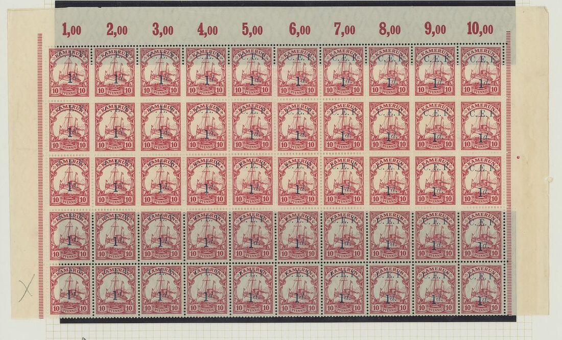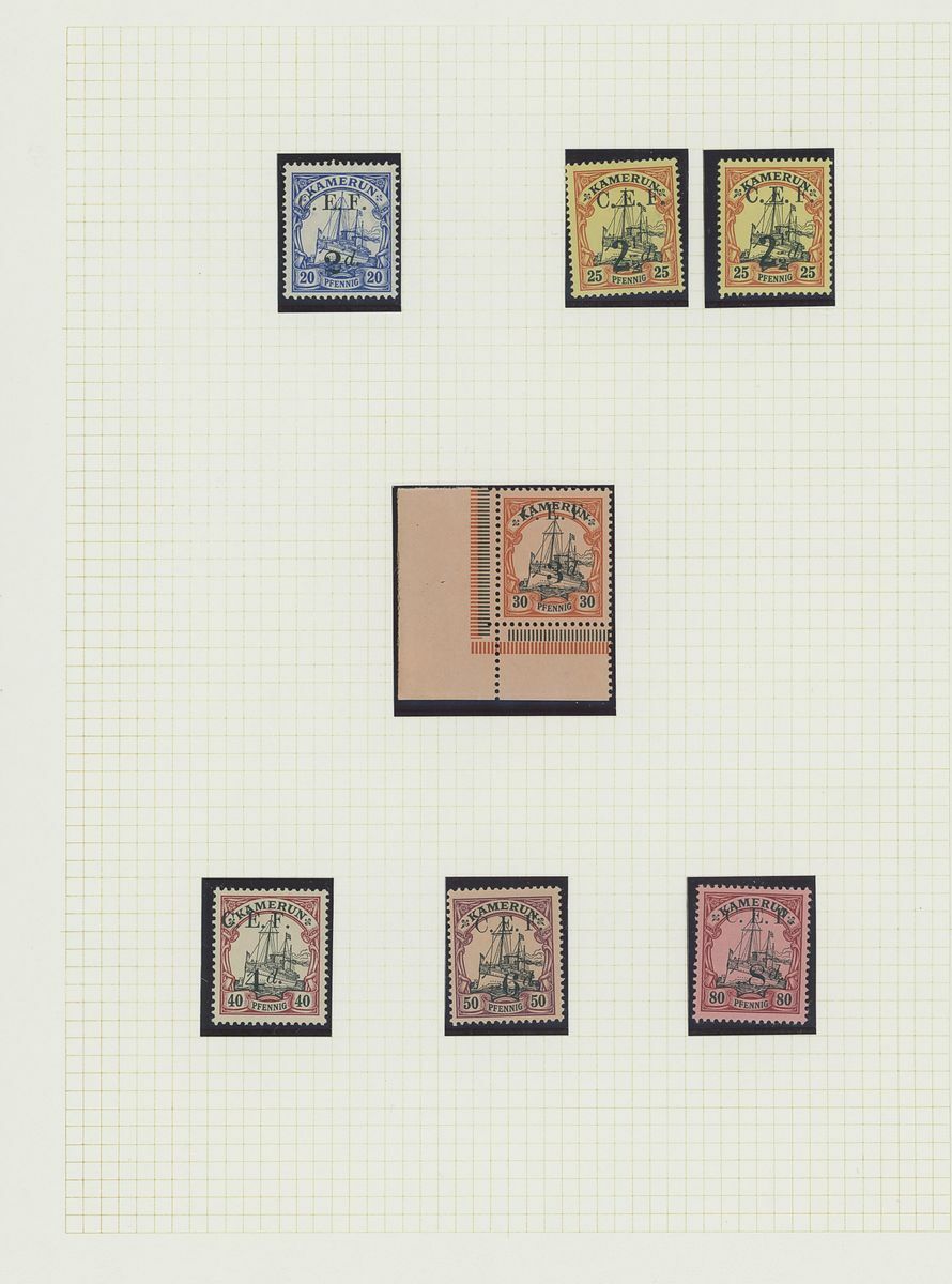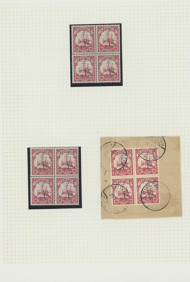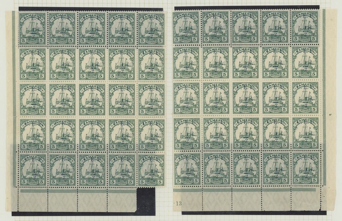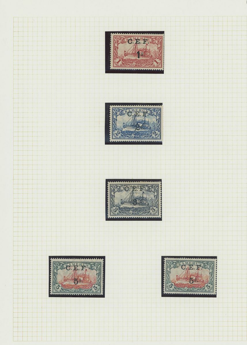 1915 duplicated mint and used collection neatly arranged on fifteen written up album pages including a full set to 5/- mint, an extra 5/- mint, ½d. on 5pf. a sheet divided in two blocks of fifty mint, 1d. on 10pf. a sheet divided in two blocks of fifty mint, also few varieties and unused postal stationery ½d. on 5pf (2) and 1d. on 10pf.; generally good to fine .