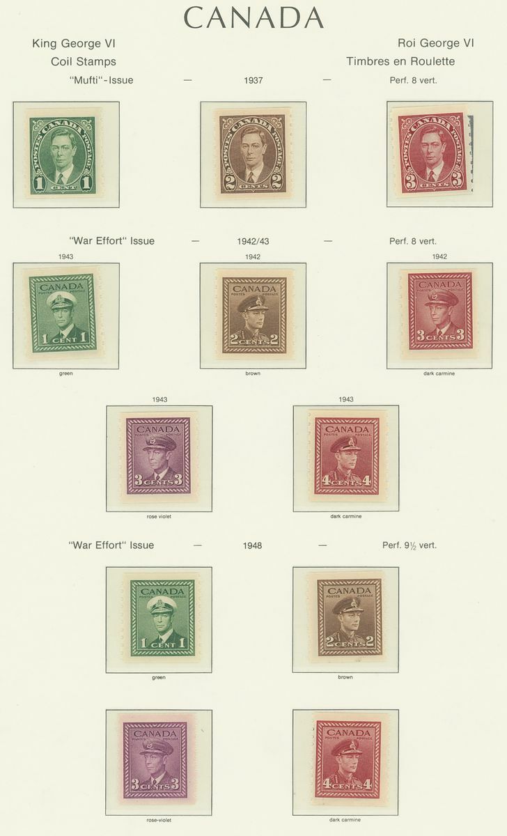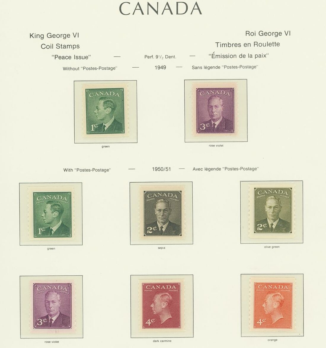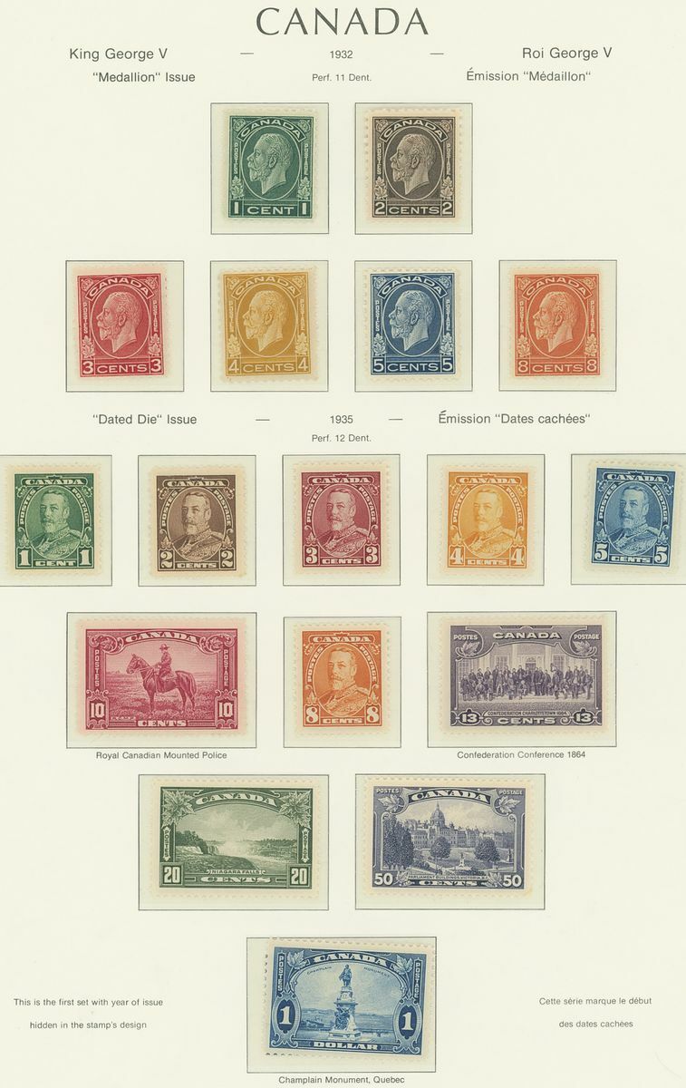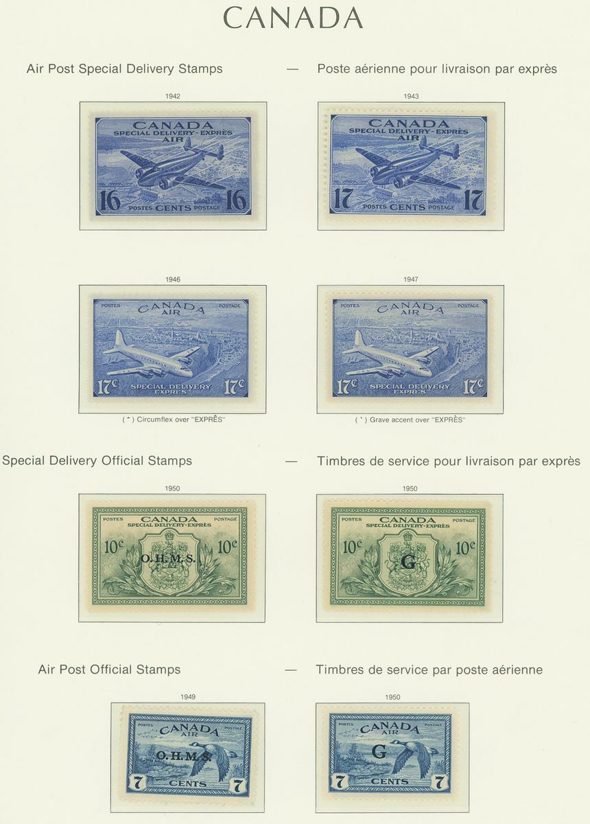 1851-1952 mint collection, attractively arranged in a Lighthouse hingeless album, with many desirable and high-cataloguing items, beginning with 1852 3d red (into design at top, small thin), 1857 ½d rose (small scuff at foot, margins full to just clear), 1859 5c vermilion, nicely centered 1c rose, and 10c red lilac, strong run of Large Queens, with each denomination represented, the 15c in multiple shades, one 1c value showing portion of Bothwell watermark (reperforated), near-complete Small Queens for the available spaces, noting many shades, as well as jumbo-margin ½c, fine 5c olive and pleasing 10c dull rose-lilac and brown-red, 1c perf 11.5x12 (hinge thin), 1897 Diamond Jubilee complete, the dollar values chiefly with desirable and select centering, 1897/1902 Maple Leaf and Numeral Issues complete, the 7c to 10c Numerals particularly well centered, King Edward VII & Quebec Tercentenary complete, noting rich fresh colours, complete basic run of Admirals including coil singles, 1917 Confederation through 1951 coils complete, chiefly fine-very fine, with a spot-check yielding several never hinged examples, including the 50c Grand Pré and $1 Mount Edith Cavell, fulsome back-of-the-book including complete airmails, 2c to 8c registration stamps including shades, Admiral War Tax complete including the scarce 2c+1c brown Die I, fresh Special Delivery issues including a very fine 1898 10c, complete official overprints, most with select centering, chiefly no gum to the end of the Large Queens, then largely hinged from thereon, the odd fault to be expected particularly among the Victorian issues, a few certificates accompany, a chiefly fresh and fine collection which took tremendous effort to assemble.