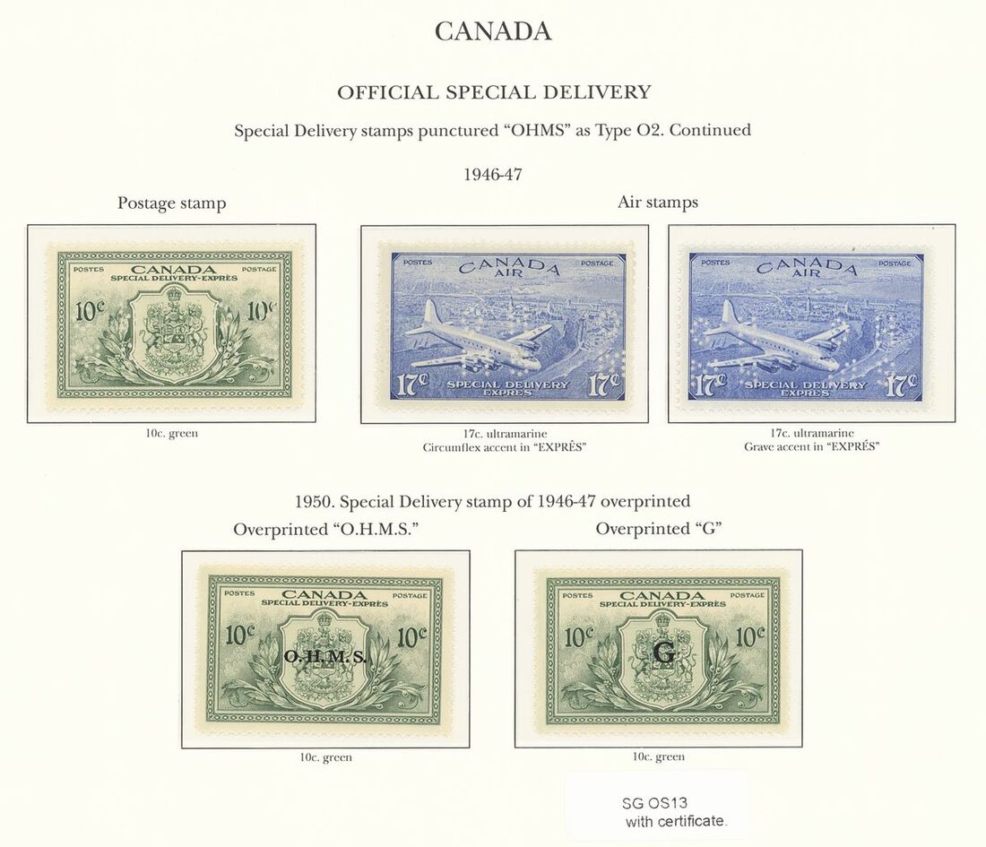 1937-52 mostly unmounted mint collection arranged on twenty one pre-printed KGVI Stanley Gibbons album pages, comprising Newfoundland and Canada, largely complete with Officials including 1939 10c. on 20c. S.G. OS13 with R.P.S. Certificate (2005), generally fine. S.G. £1,200+